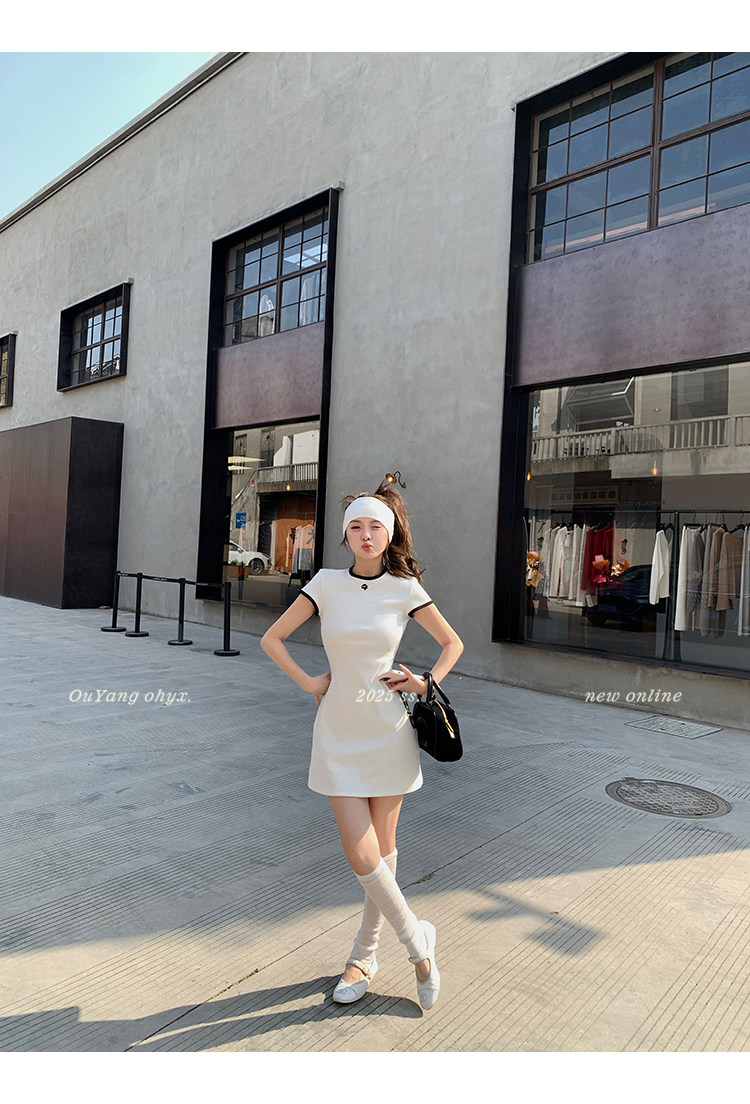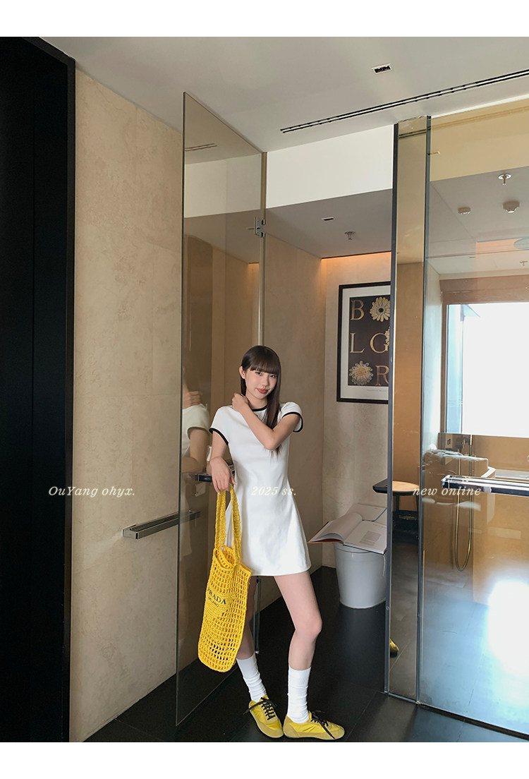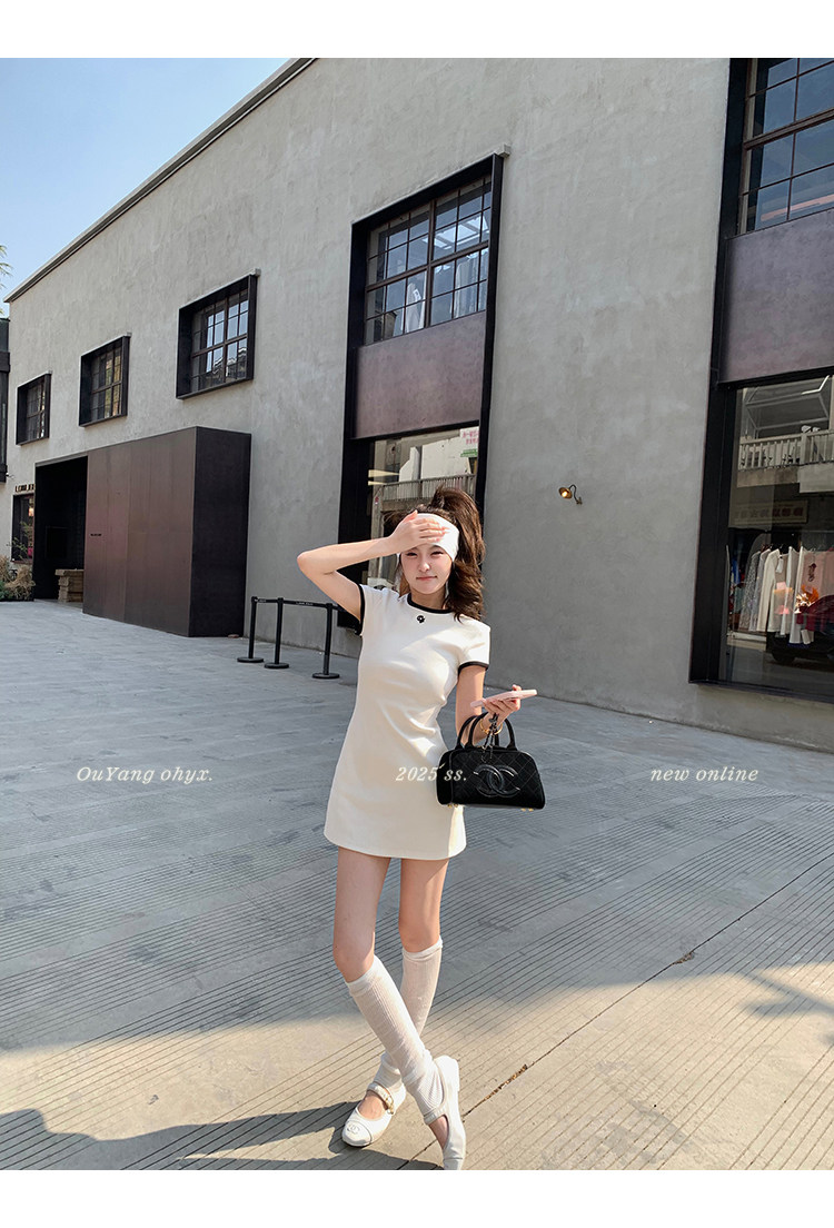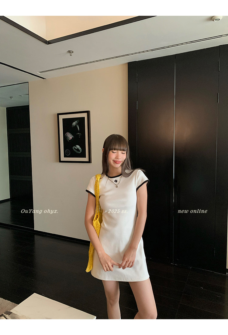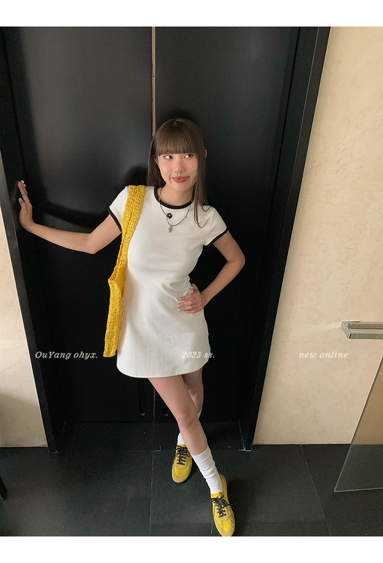 時髦撞色圓領 修飾脖頸線條