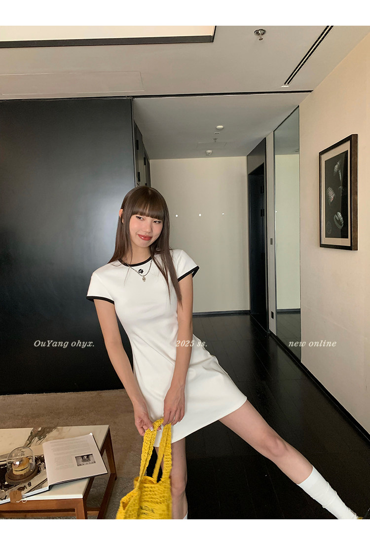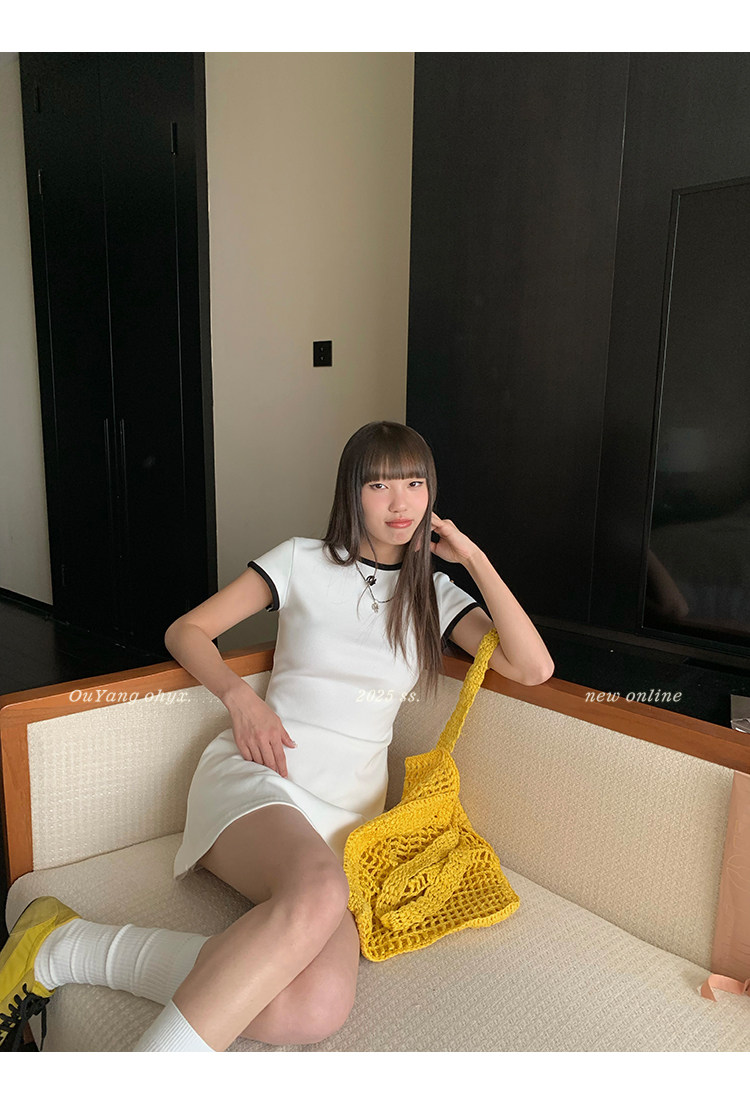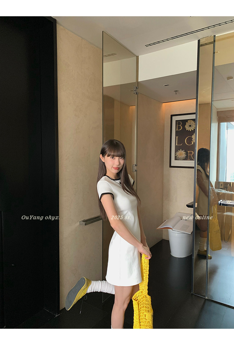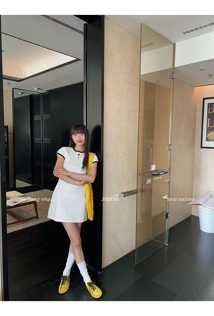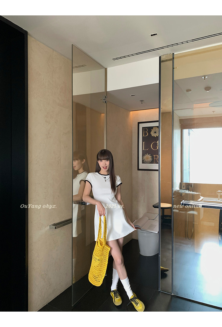 時髦撞色圓領 修飾脖頸線條