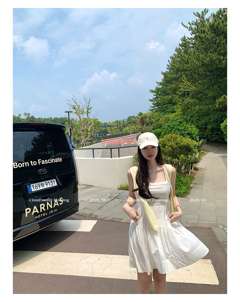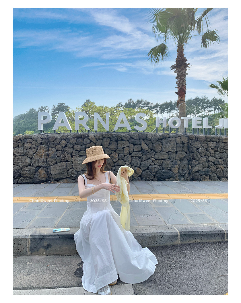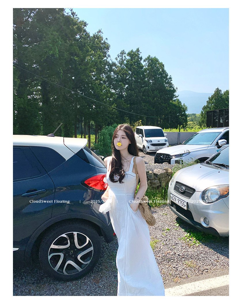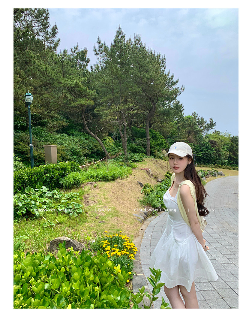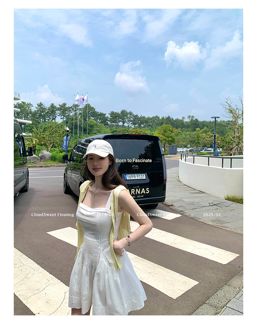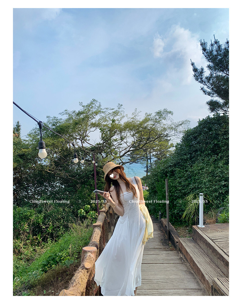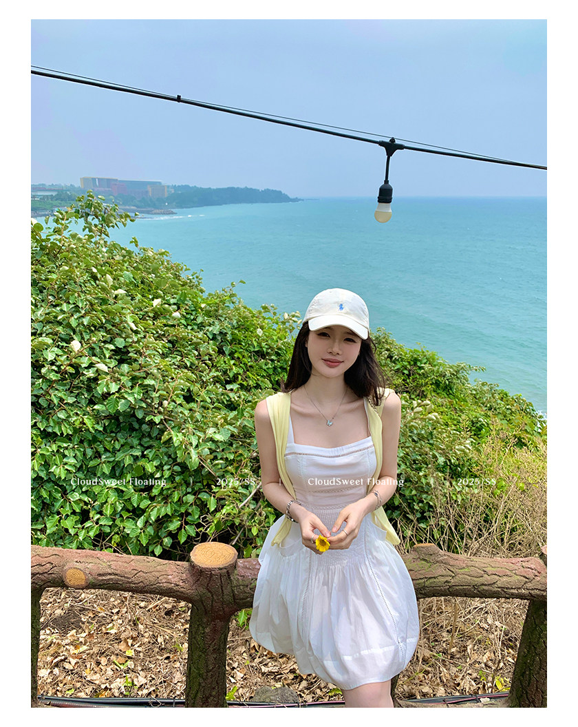 長袖改版的吊帶裙,上身是清純白花的感覺