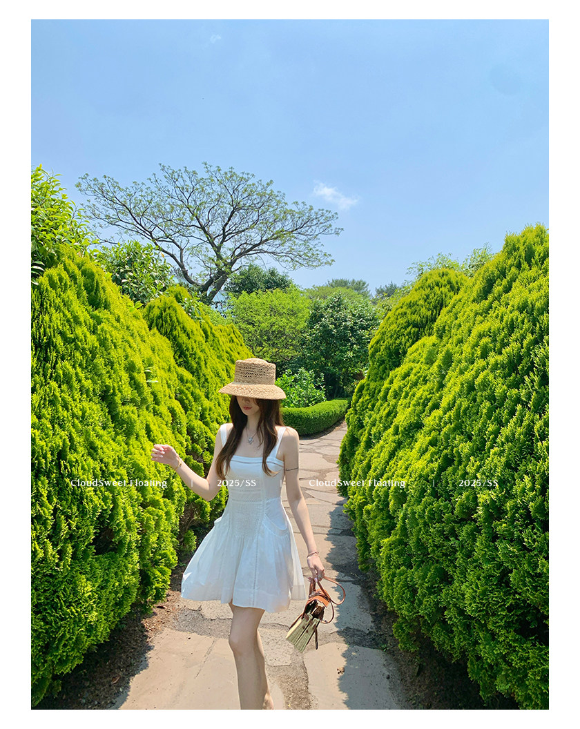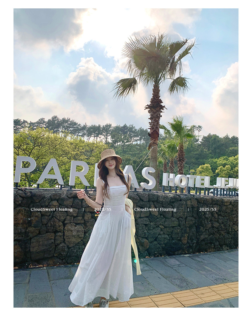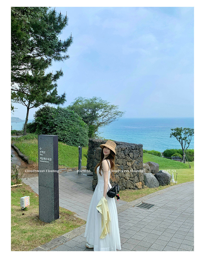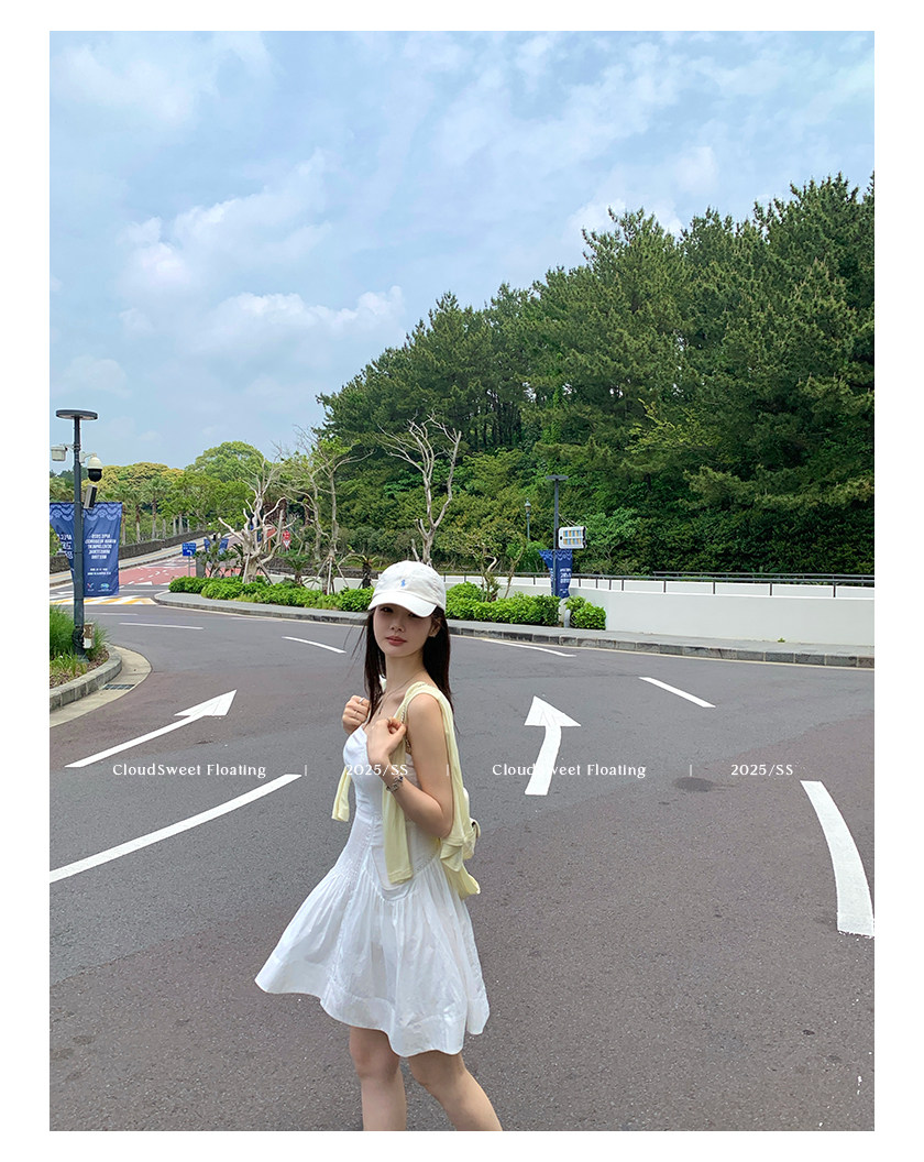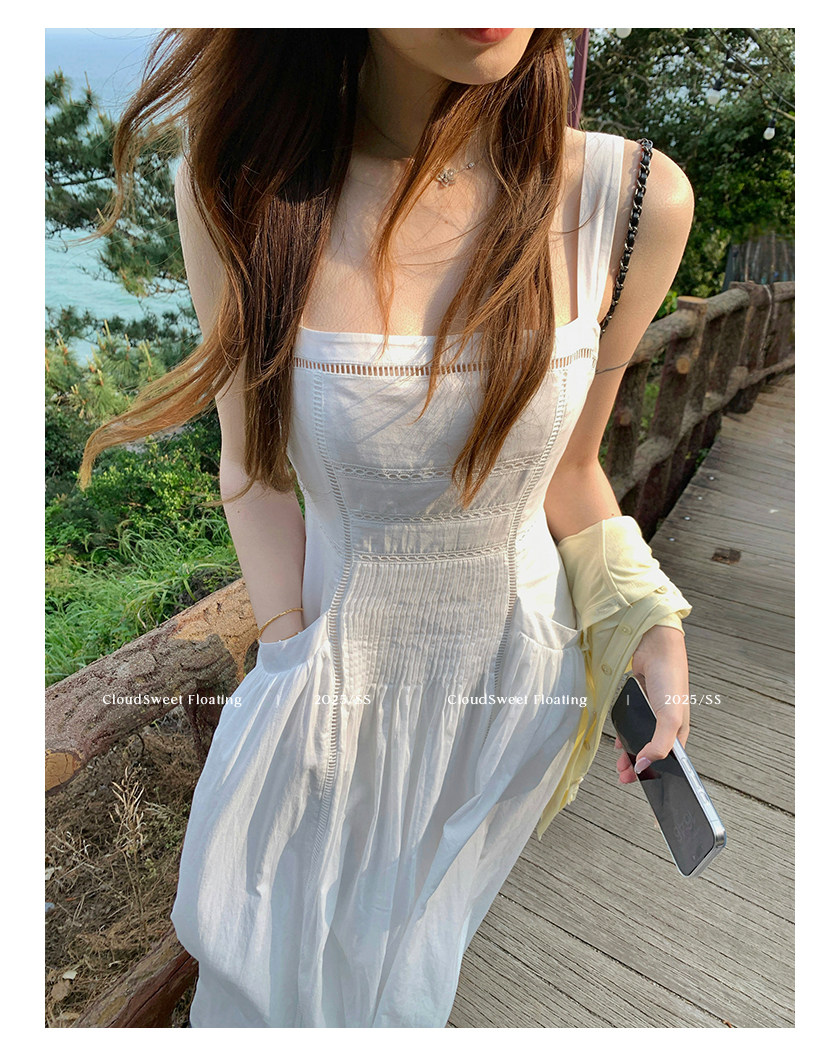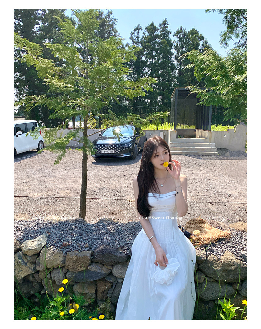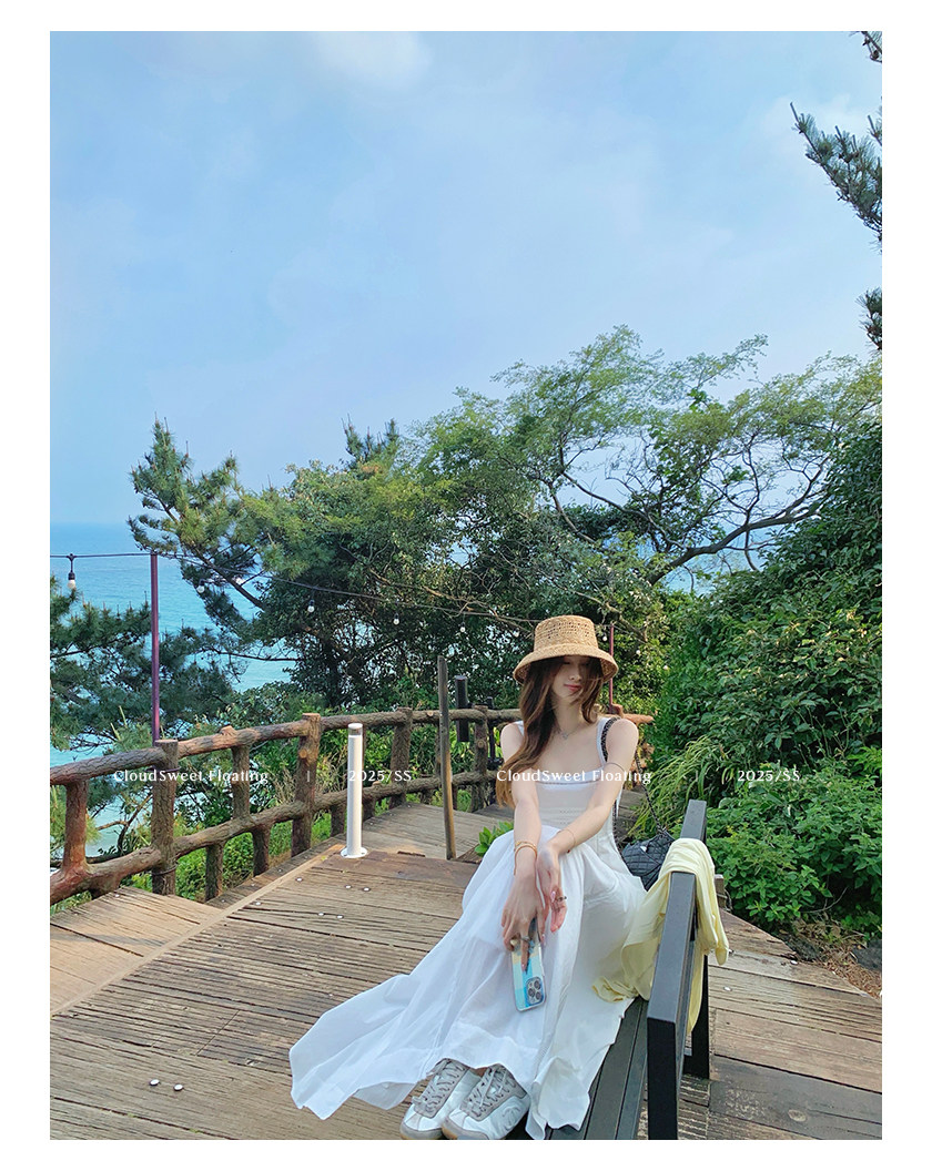 長袖改版的吊帶裙,上身是清純白花的感覺