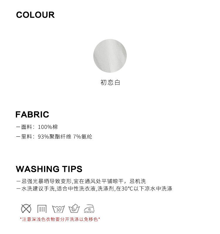 柔軟的1OO%全棉面料帶來舒適的穿著體驗
