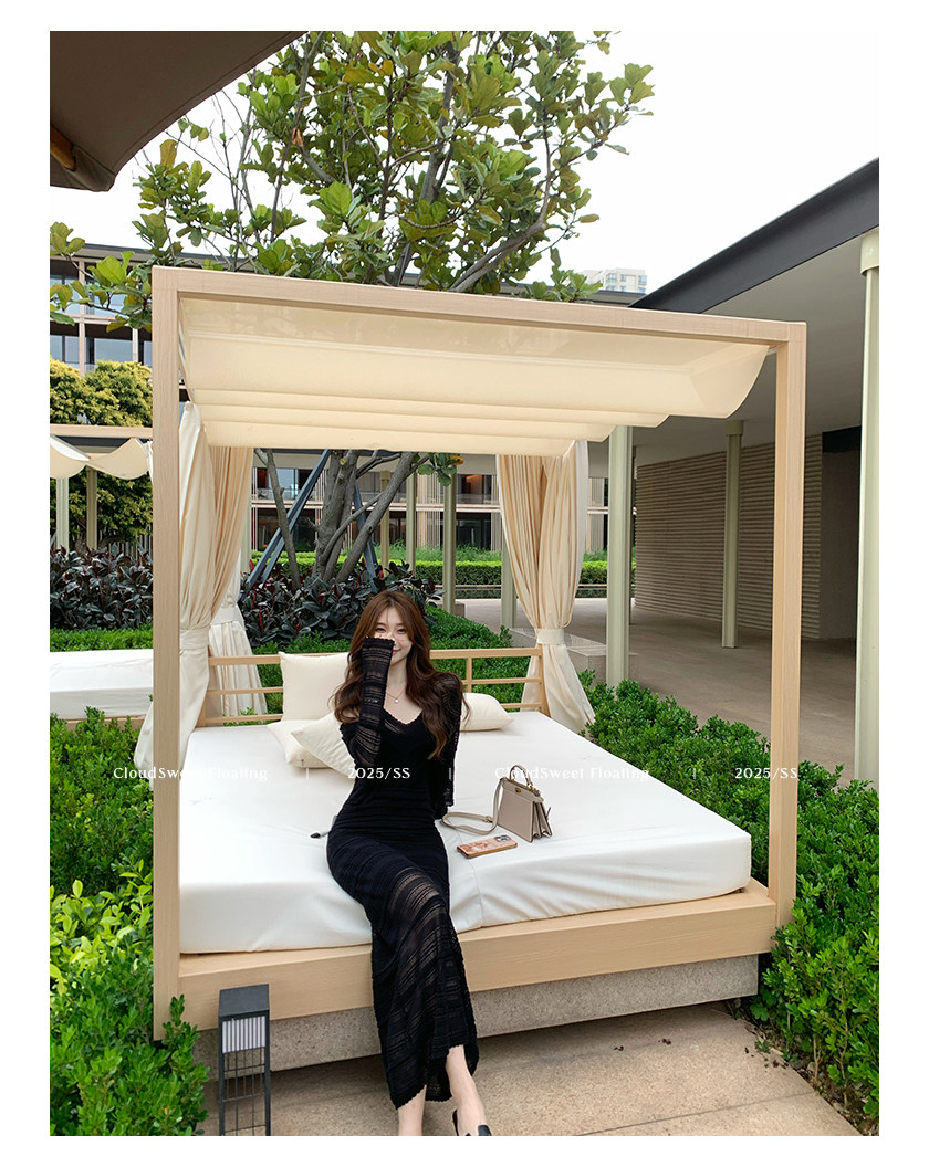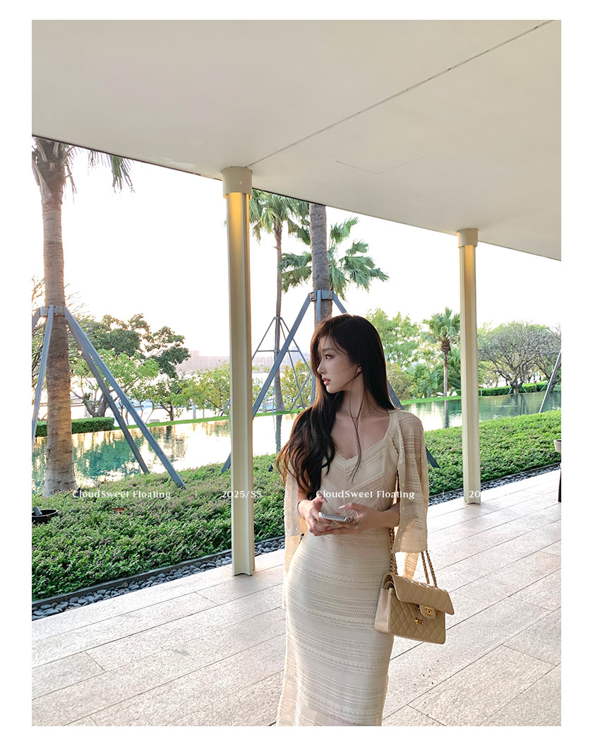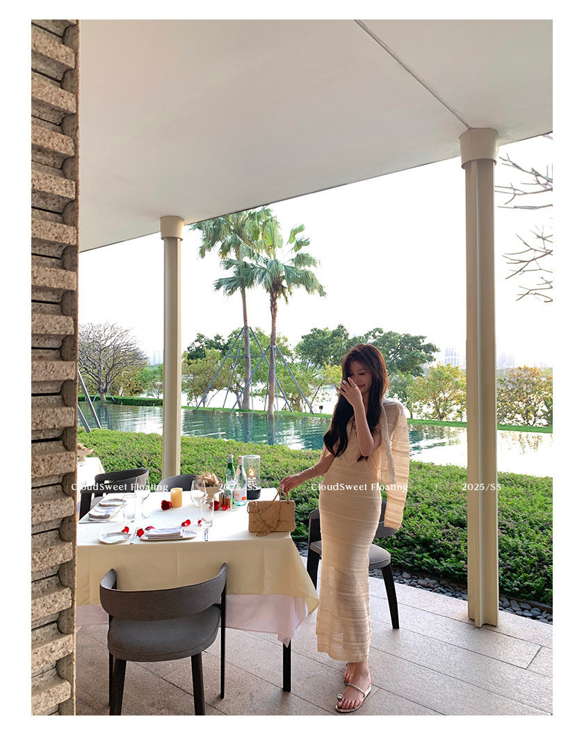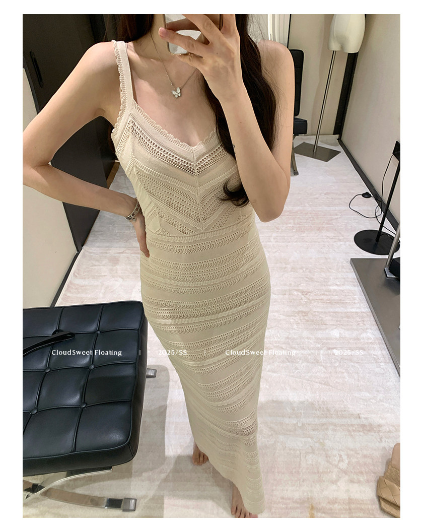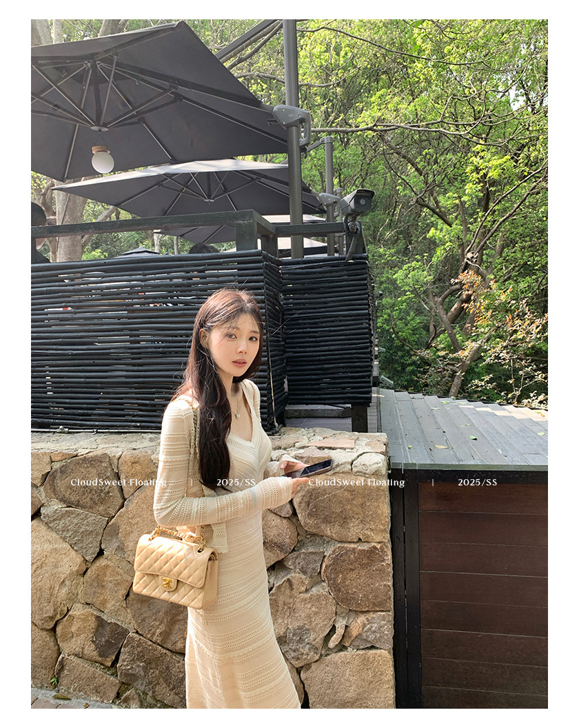 V領設計拉長脖子比例,搭配肩帶設計優化肩頸線條