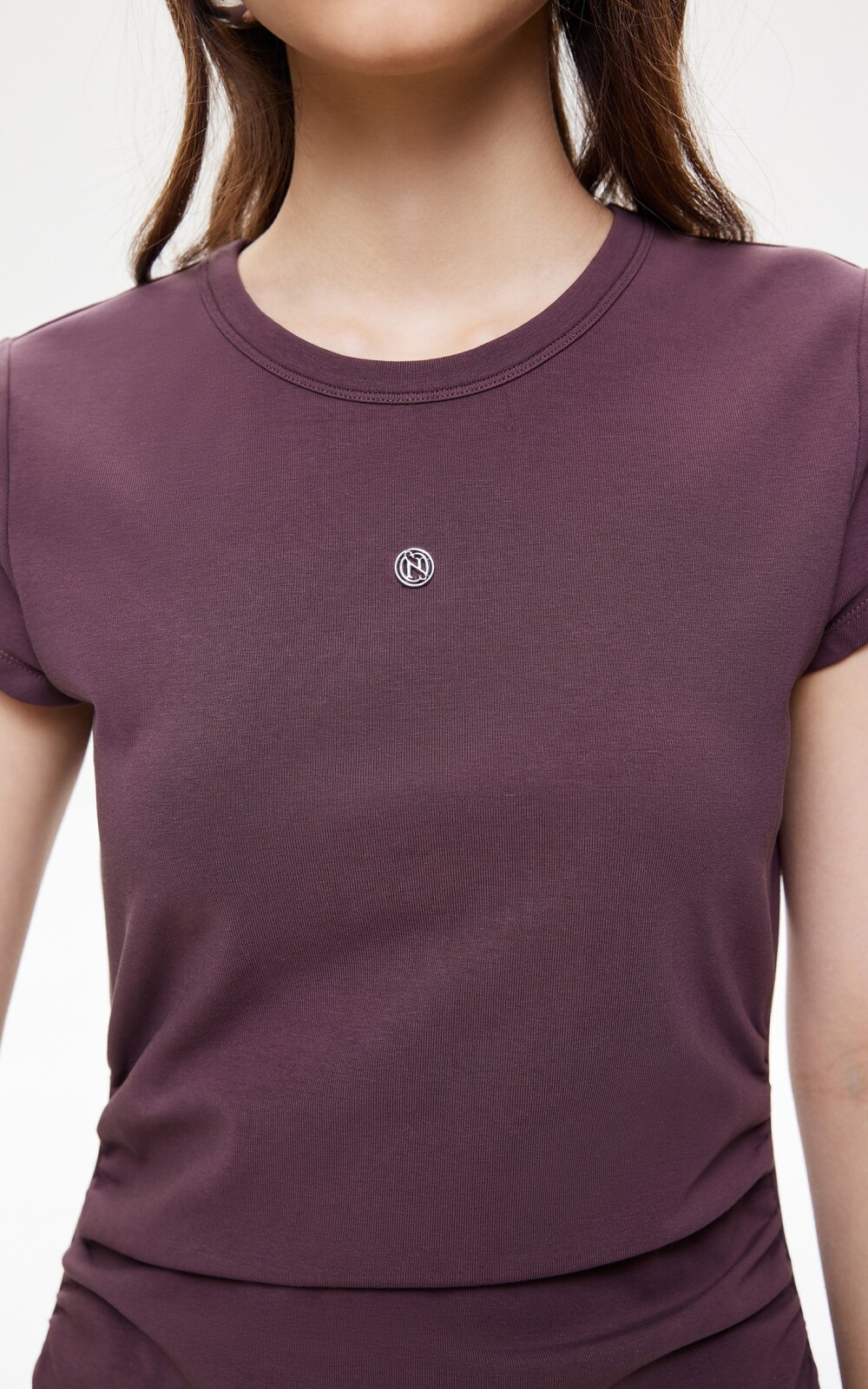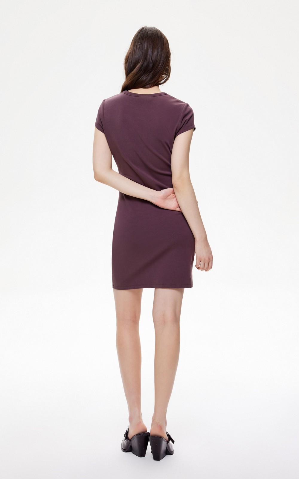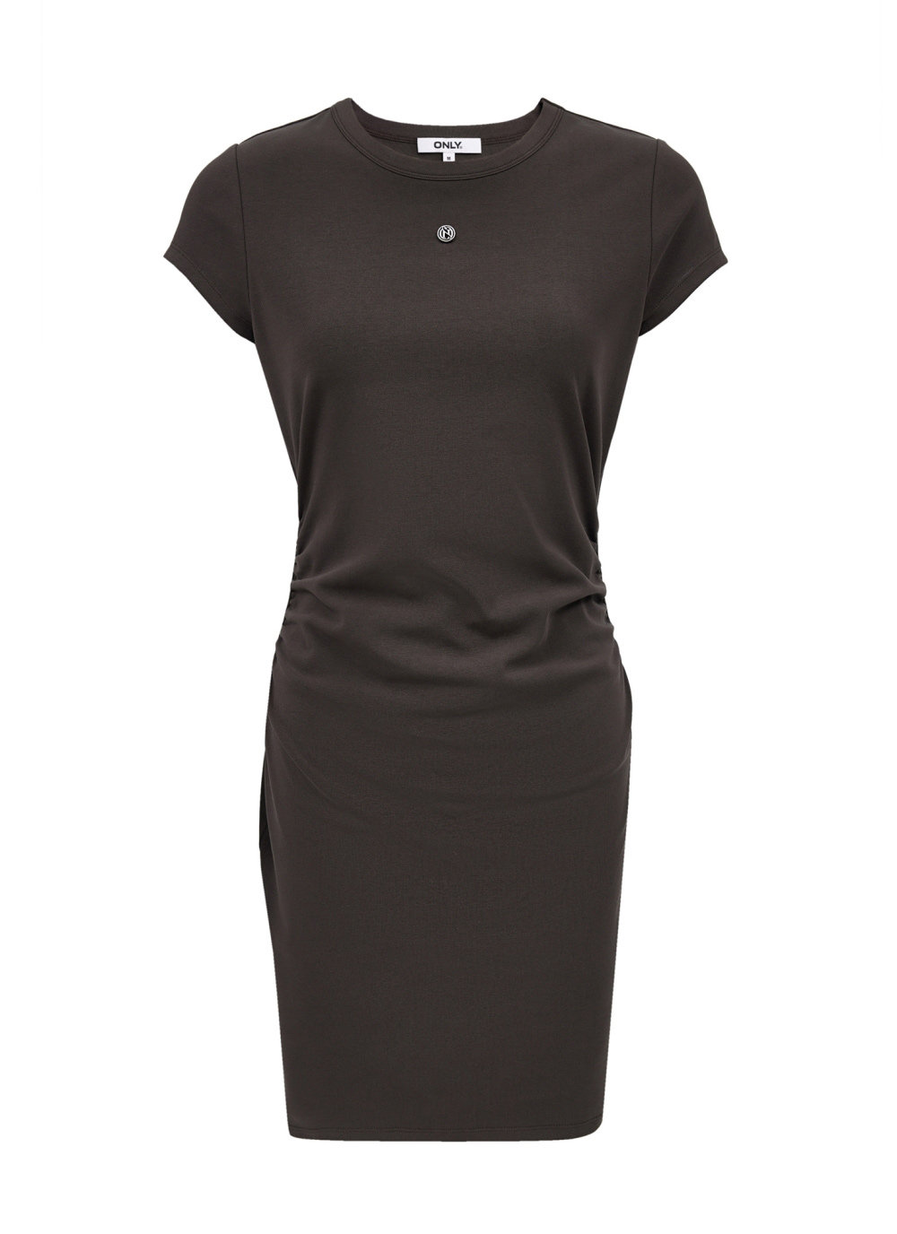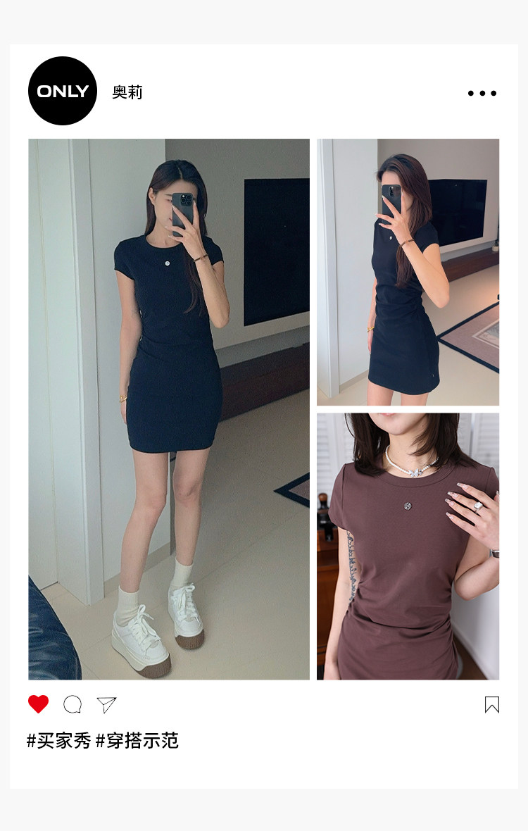 短袖修身連衣裙,腰部兩側捏褶的設計