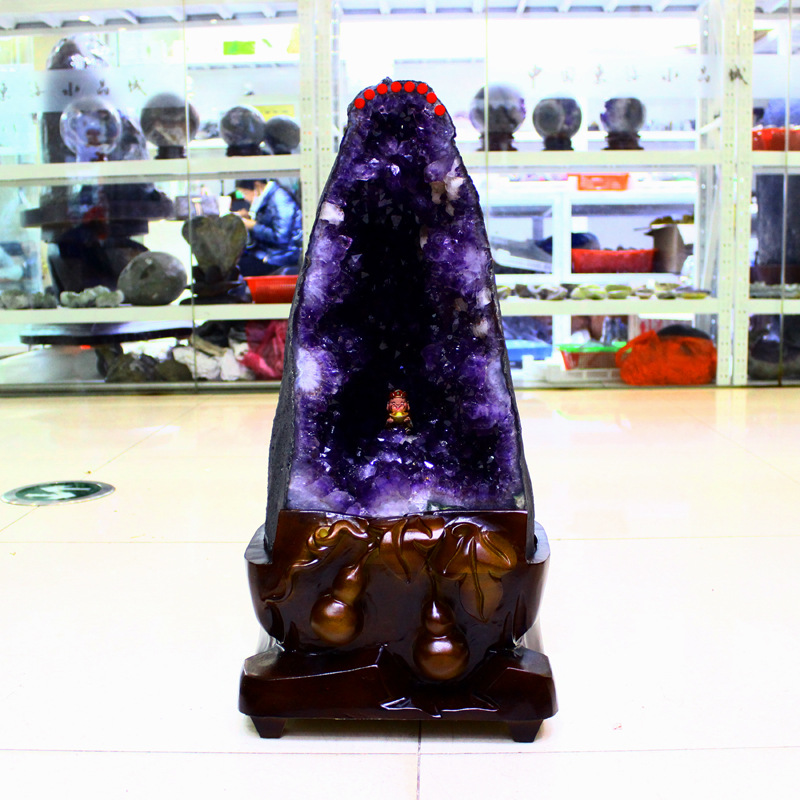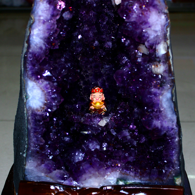 此款帶有紫晶花朵花開富貴財源廣進。帶有共生體招偏財呢。觀音洞招財聚財能量倍增呢