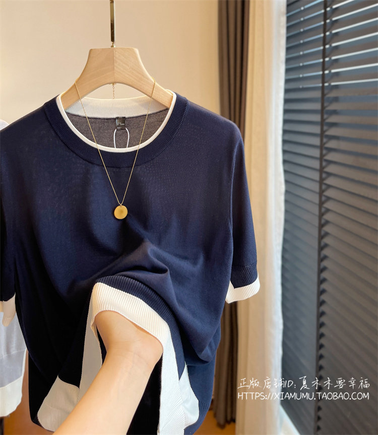 撞色針織假兩件針織T恤,打造MIU風智性時髦