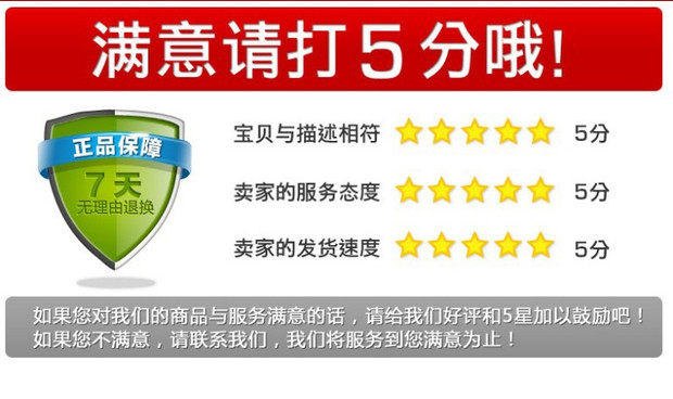 簽收7天內有質量問題的,本店負責包退包換,來回運費由本店負責!一年內包換(來回運費買家自理), 對寄回件還請親先墊付