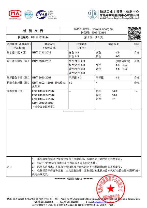面料:粘膠纖維64.3 錦綸30.6 氨綸5.1