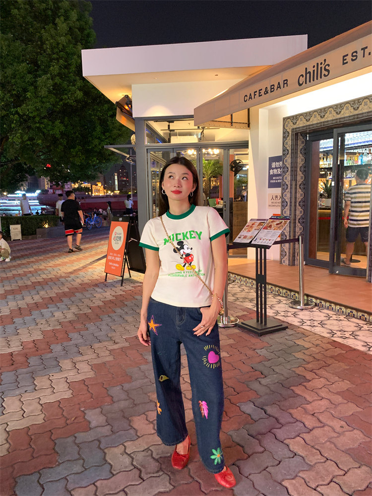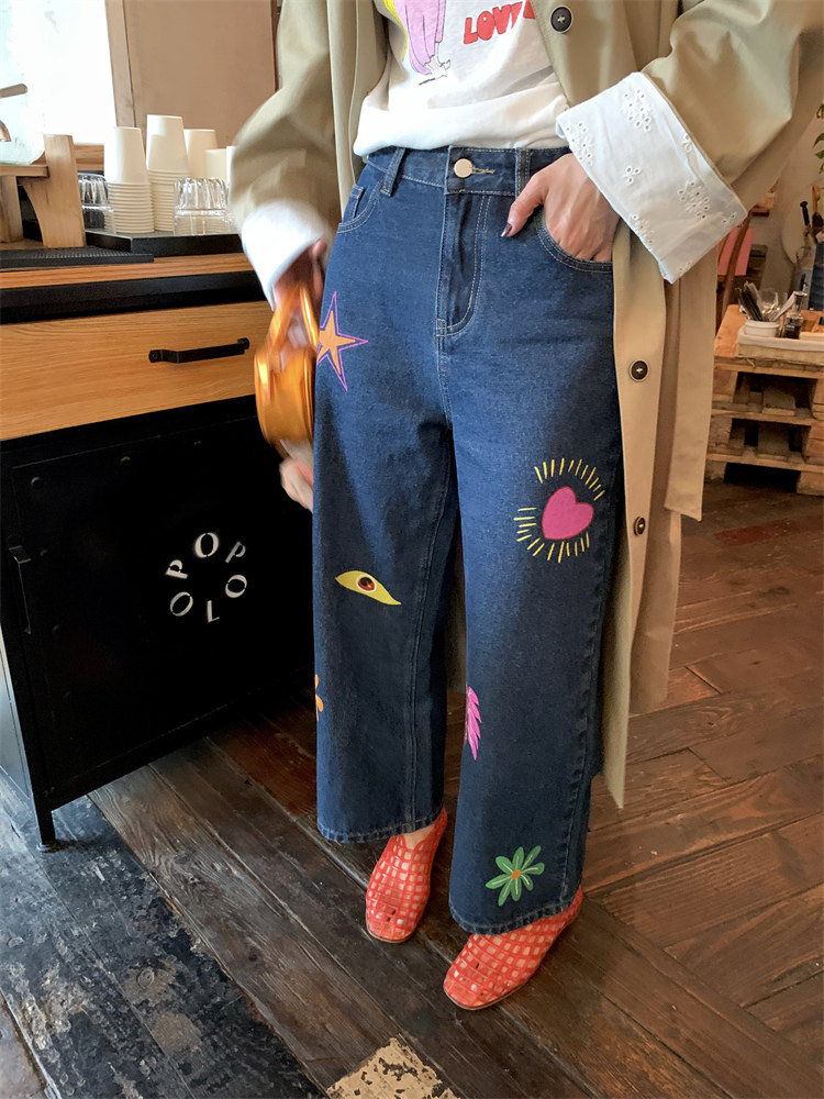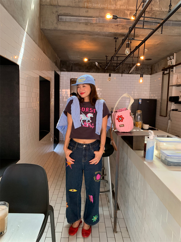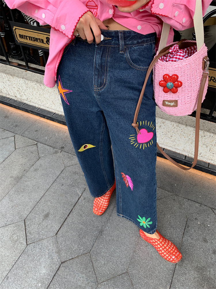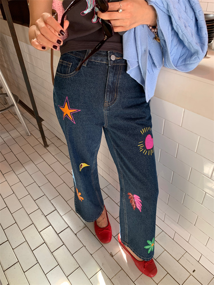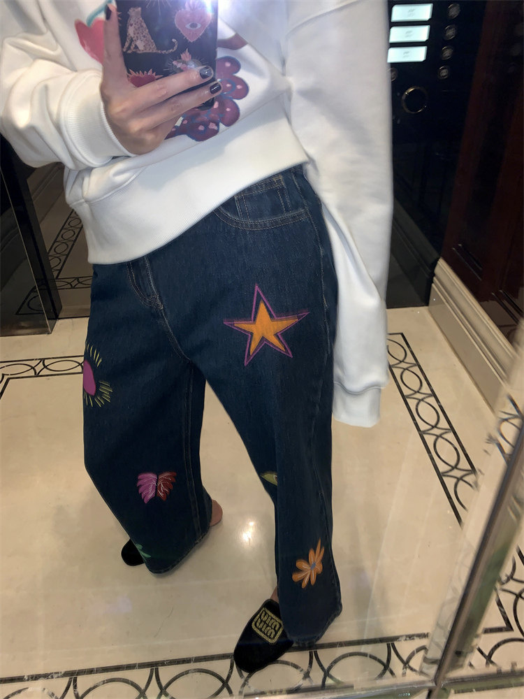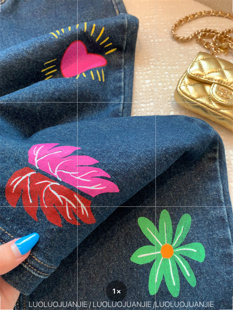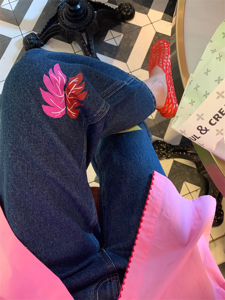 這款牛仔褲的亮色印花圖案可jue了!
