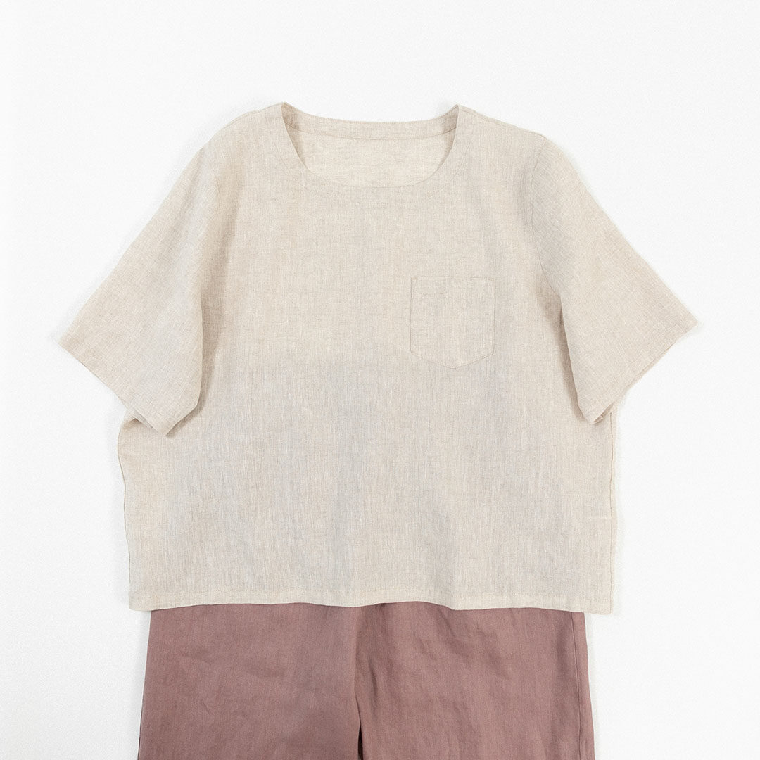 夏日輕薄款 純亞麻短袖T恤 版型慵懶寬松,不顯肚子,不會顯露身材曲線 袖子也是寬松型的,對粗壯上臂很友好。