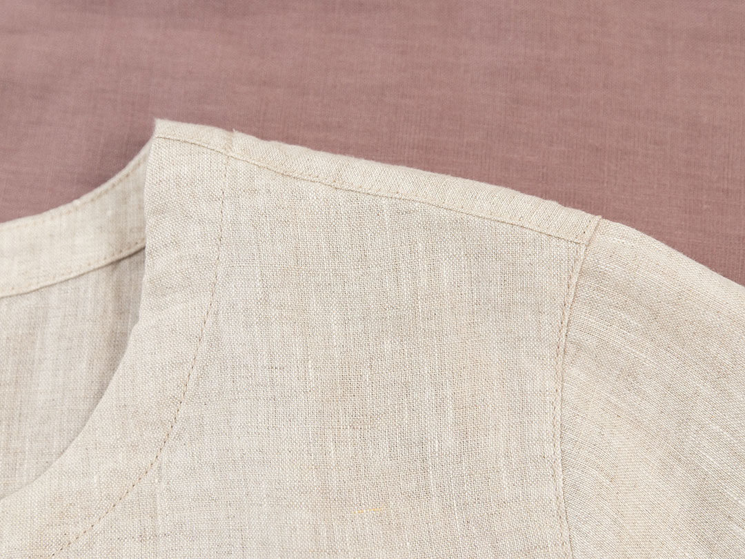 輕薄高支純亞麻 < 紗支17×21,密度58/46 > 天䔳的亞麻手感干爽,不粘膩。 輕薄透氣,柔軟且有骨感! 經過水洗工藝,貼身舒服,不扎。