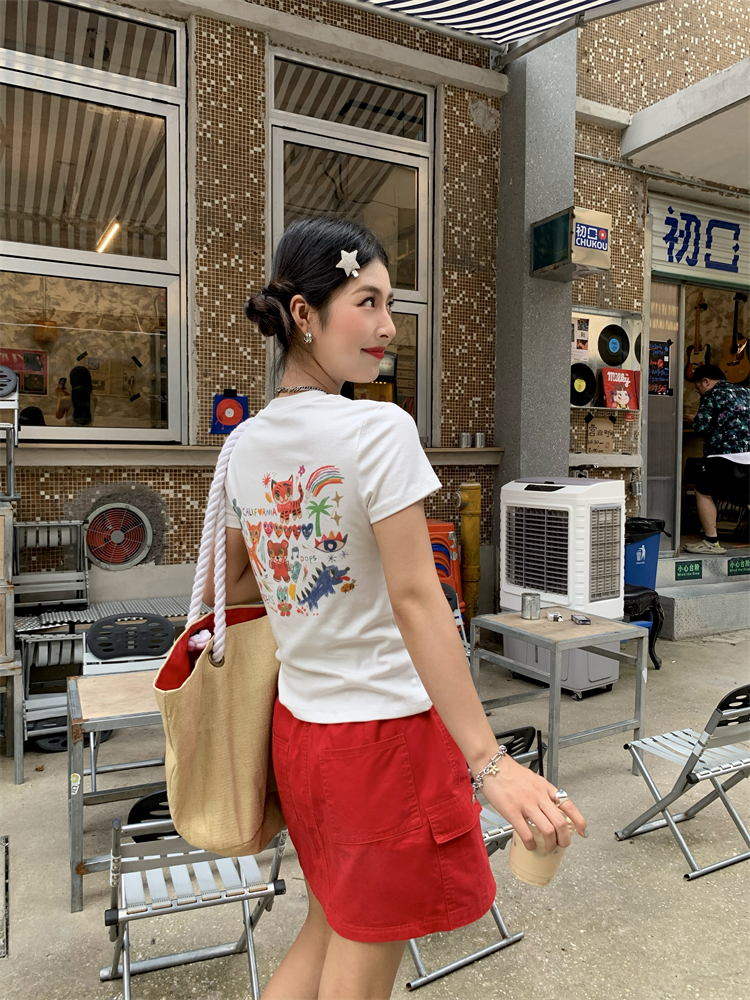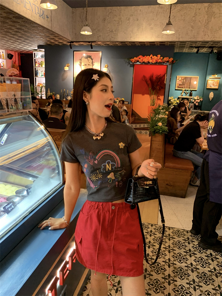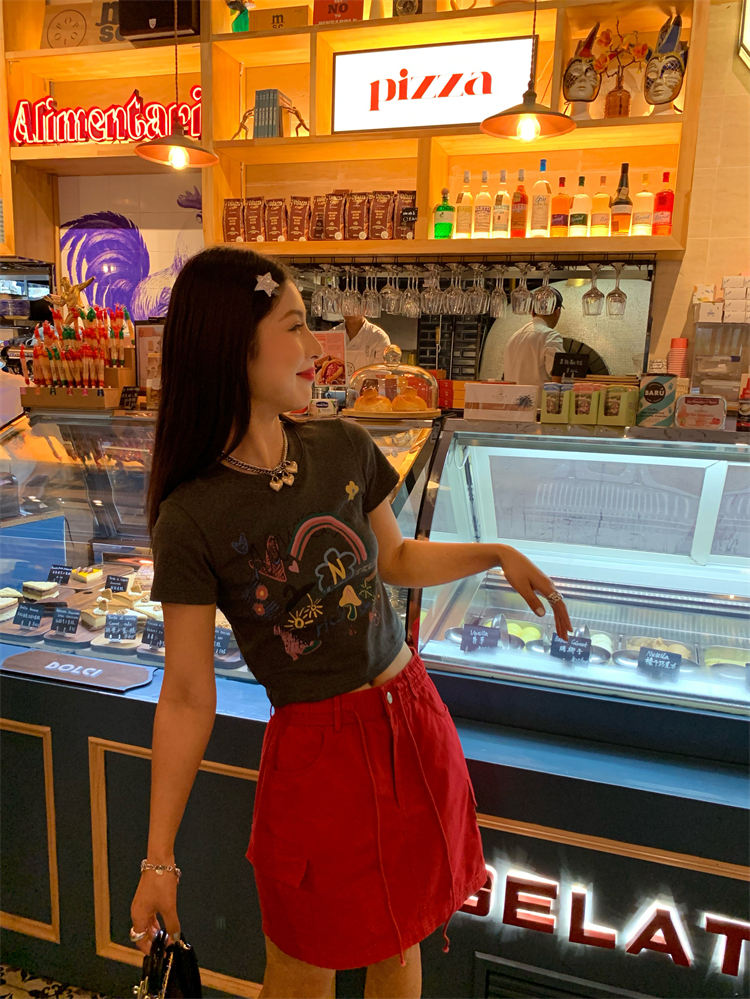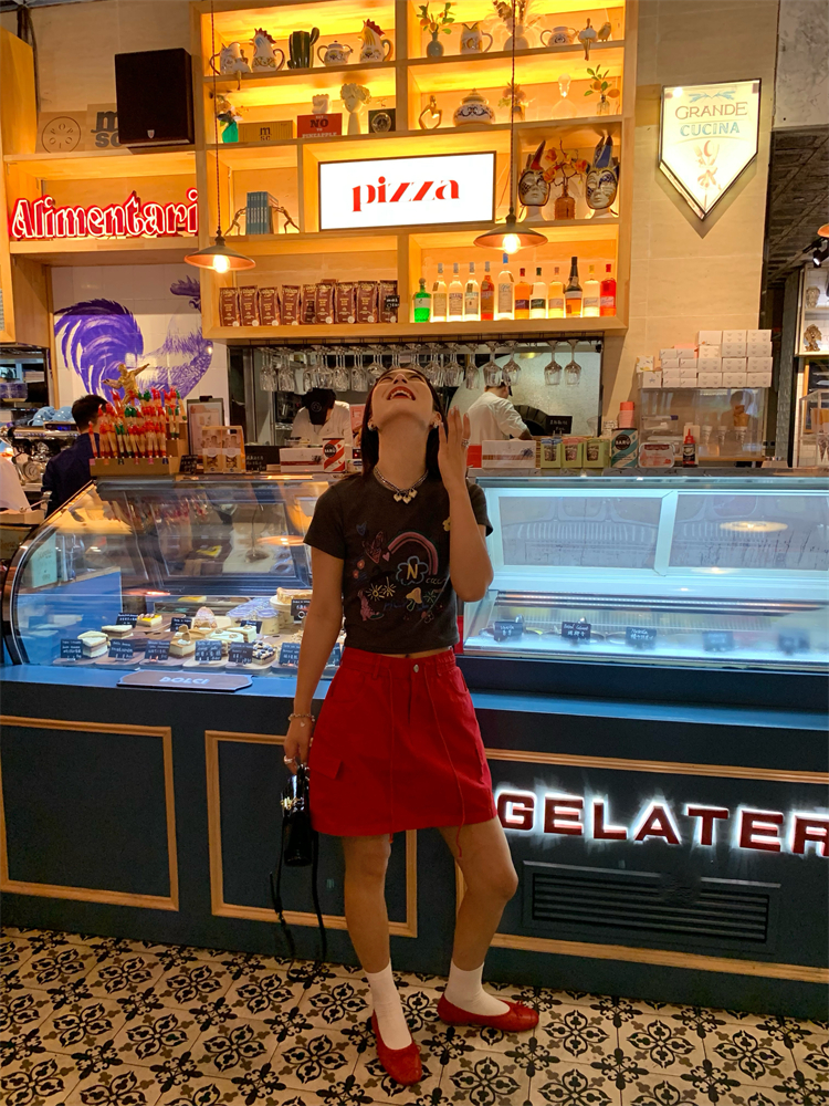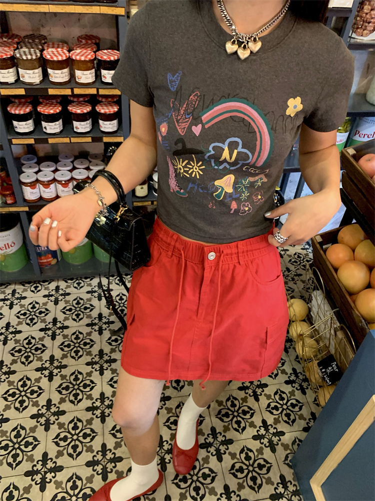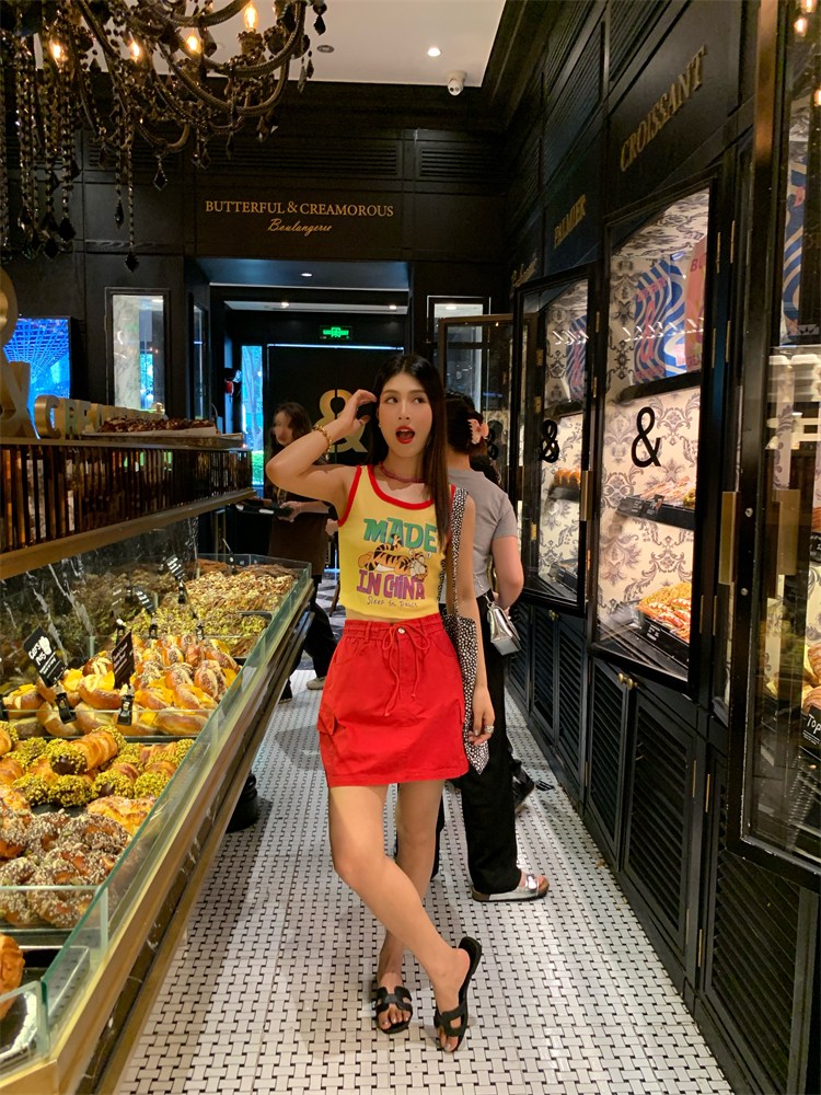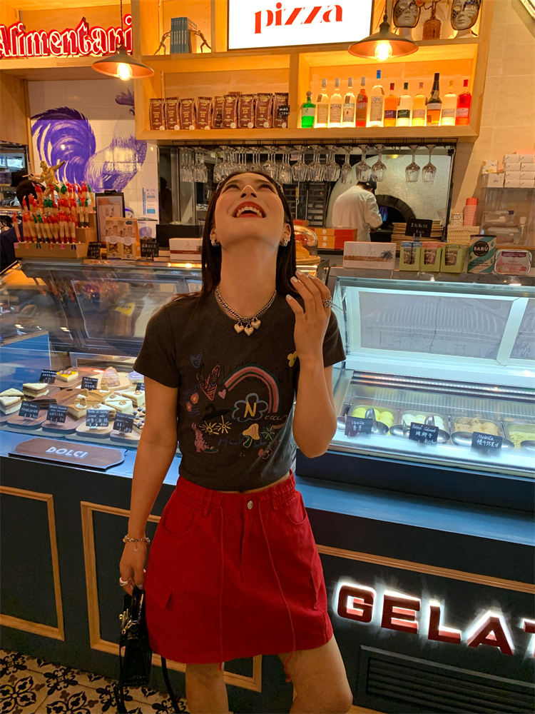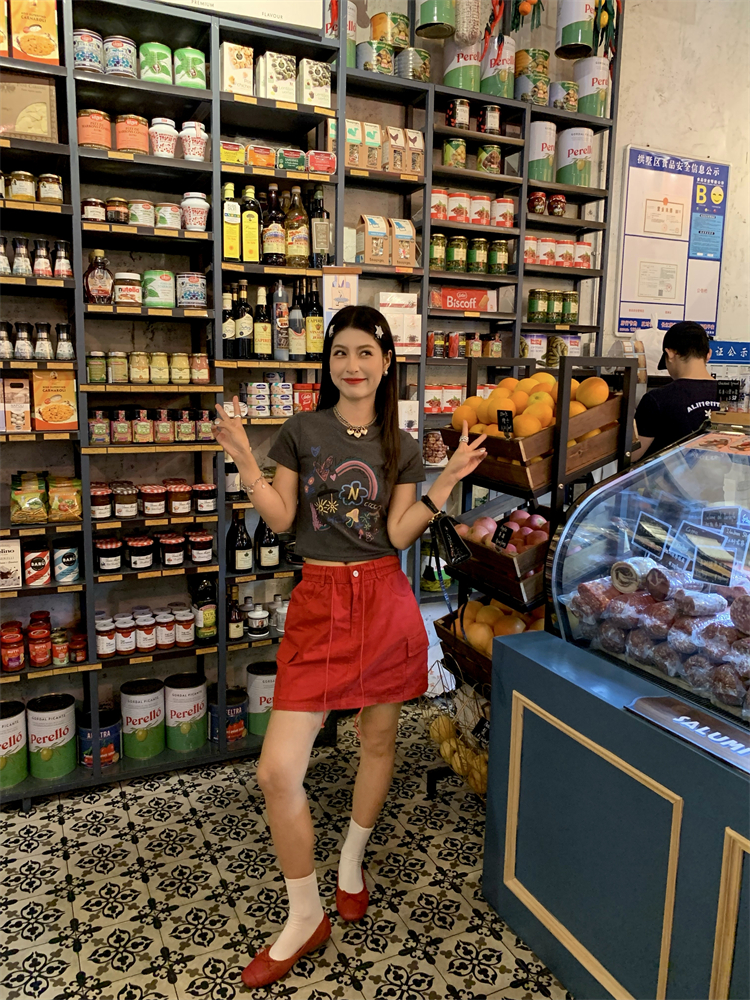 整條半裙比較寬松的直筒廓形,對身材的包容性還是不錯的,胖瘦都好穿!