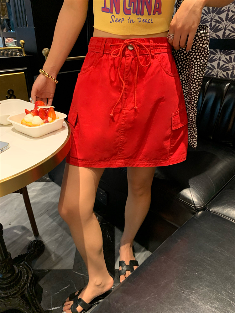 面料話,這款工裝風的裙子選用的是含棉量比較高的工裝面料!