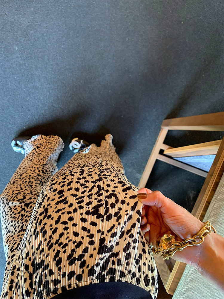 整個料子做的是針織印花的料子,豎紋的,上身chao顯瘦~