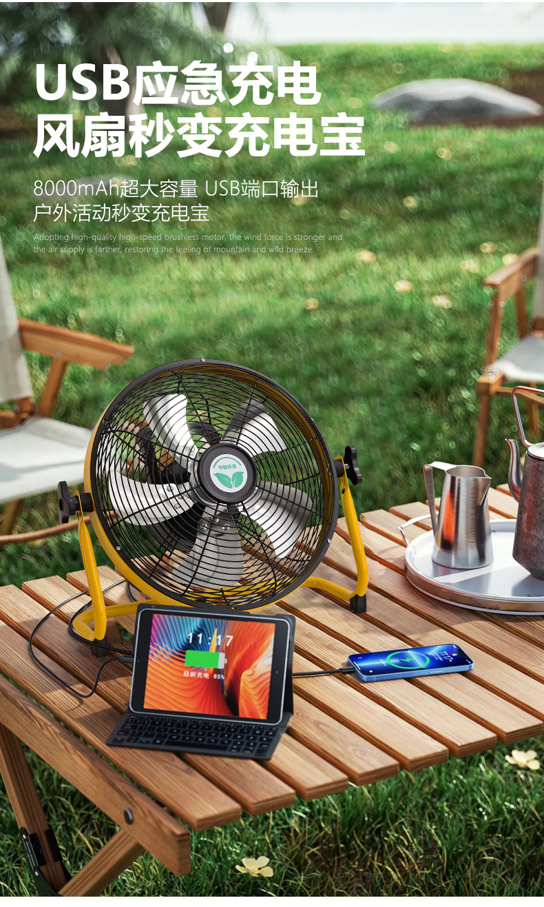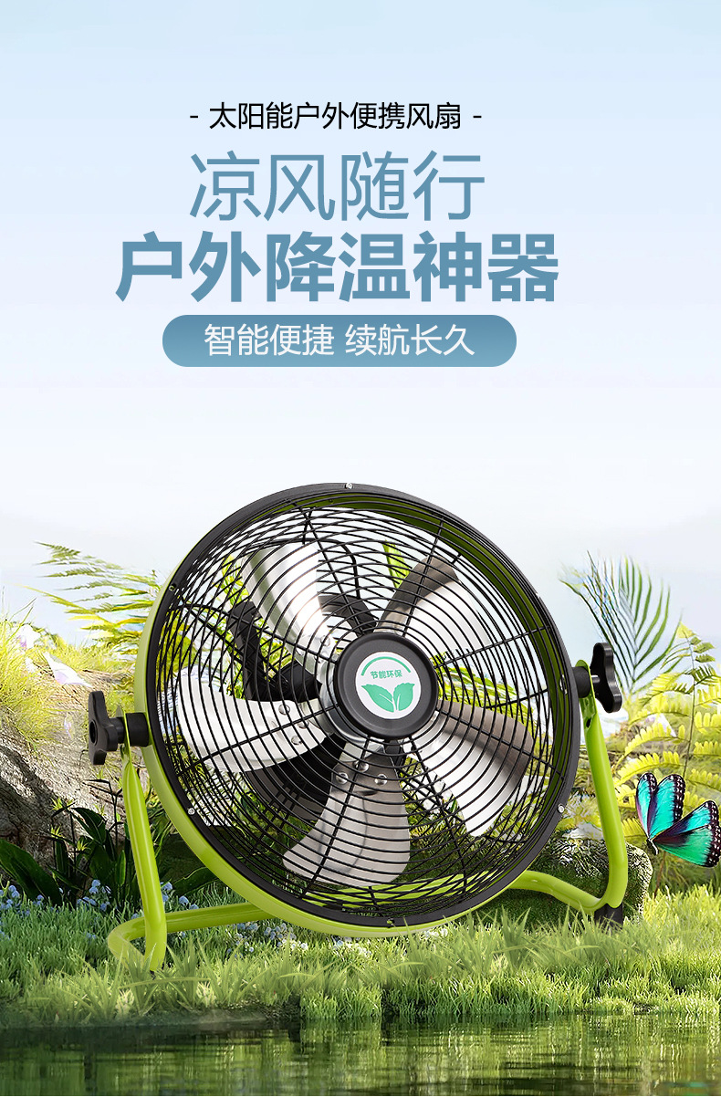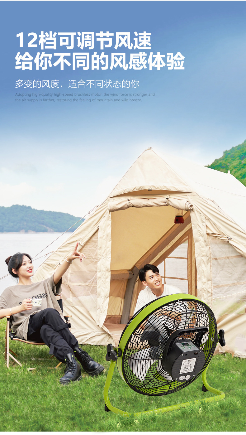 充電電風扇16寸大風力家用蓄電池便攜式無線移動戶外太陽能趴地扇