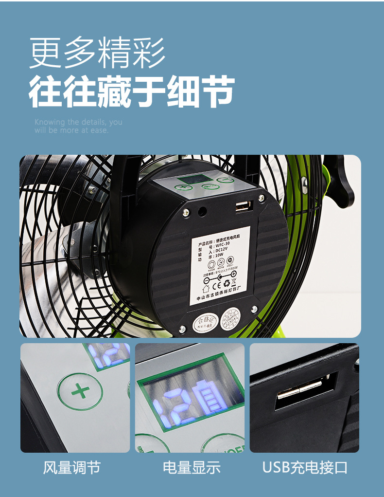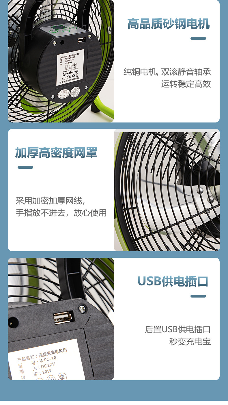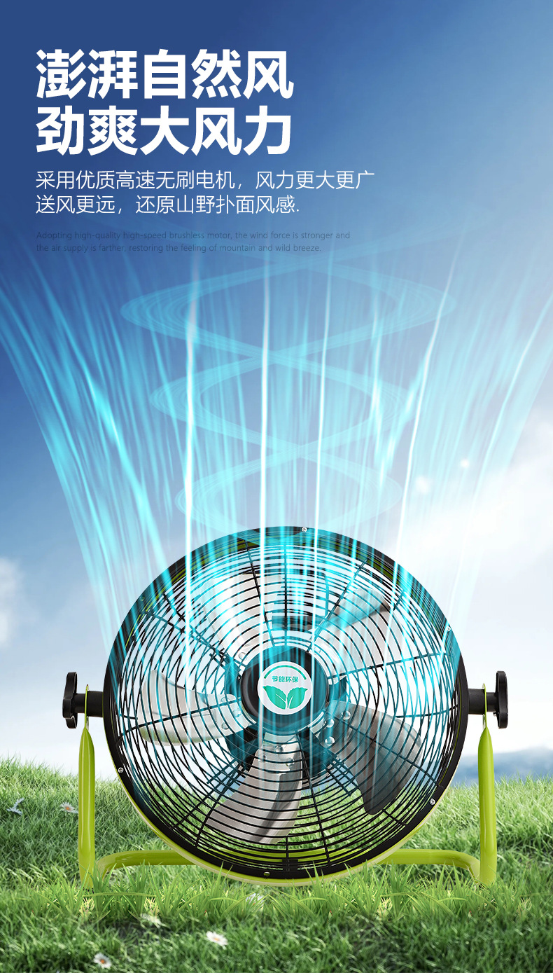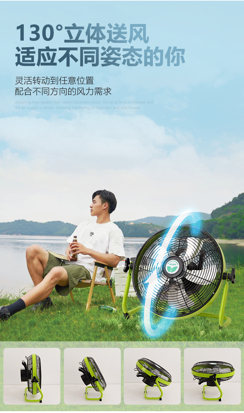 充電電風扇16寸大風力家用蓄電池便攜式無線移動戶外太陽能趴地扇