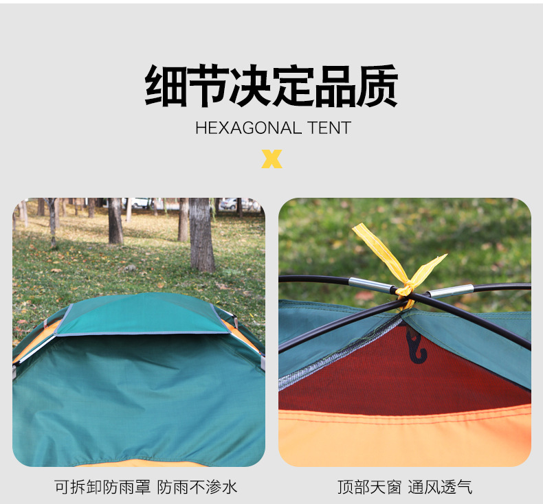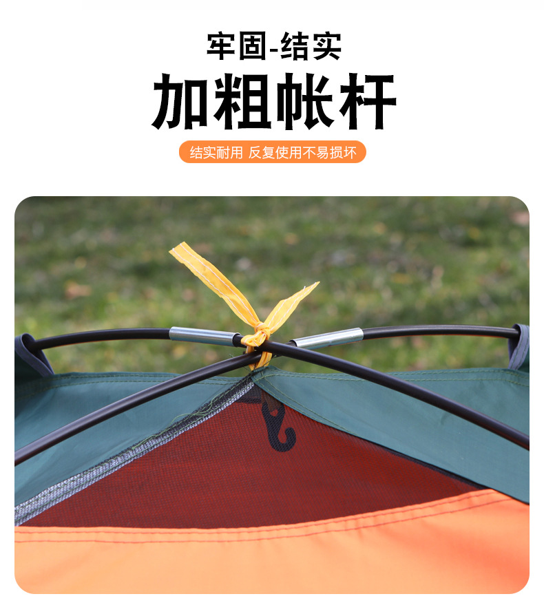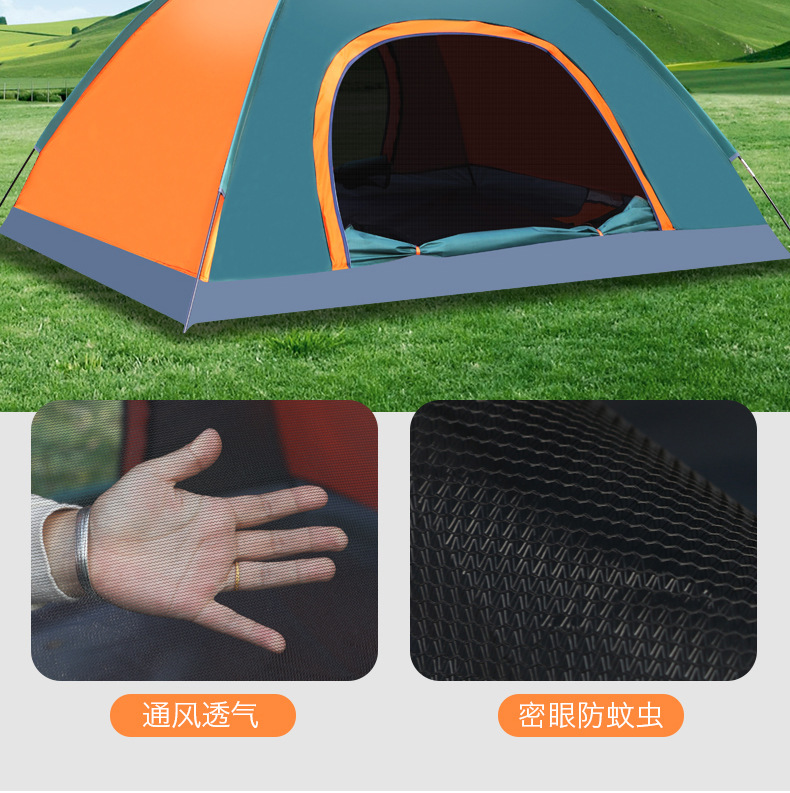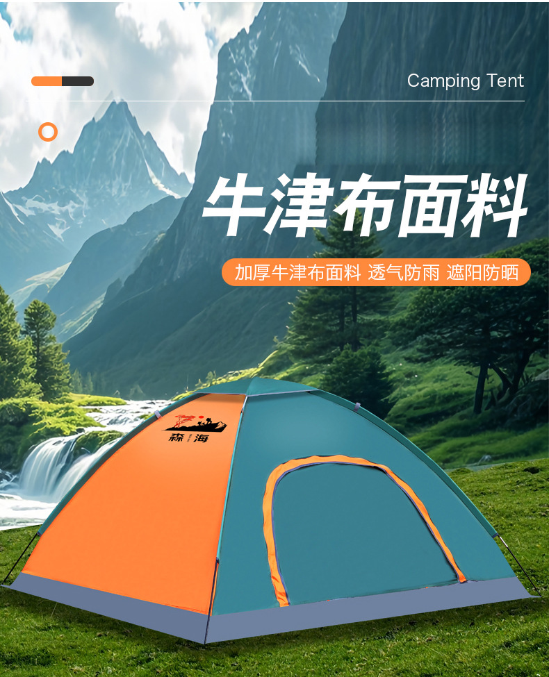 橙綠雙拼色,尺寸200*200*160CM,可容納3-4人,牛津布材質,重量2.1kg,包裝尺寸55*13*13CM