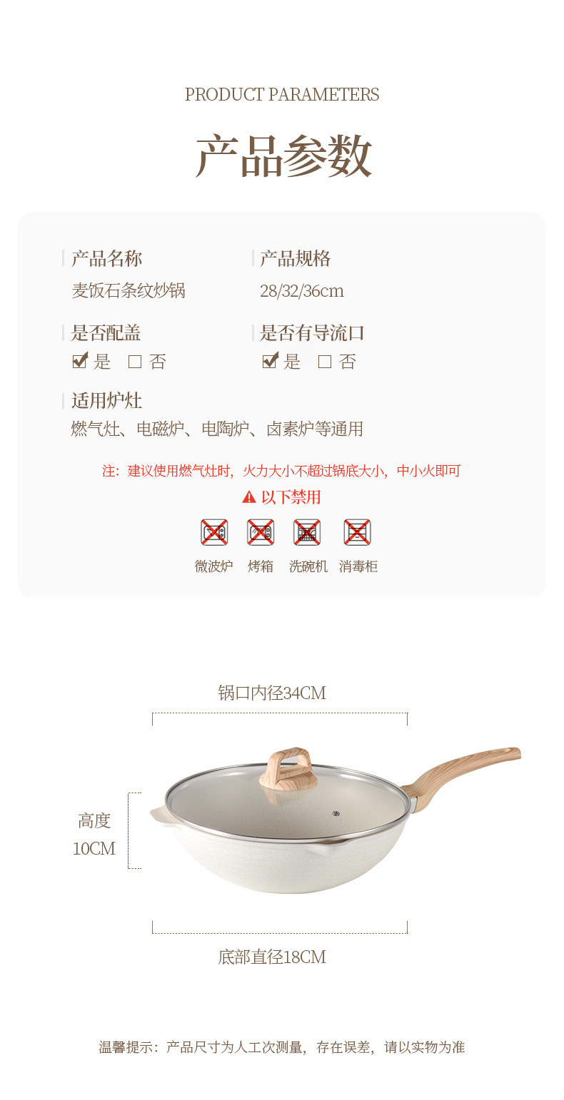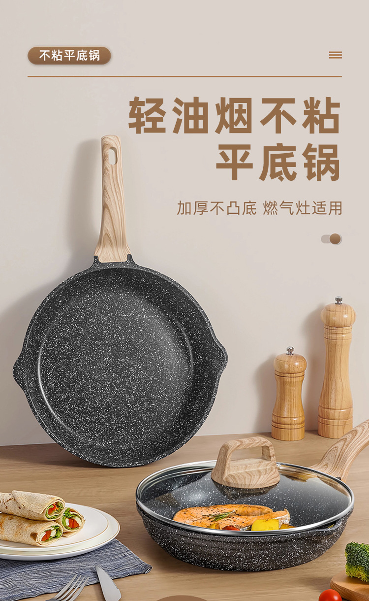 2.不粘廚具傳熱均勻,使用時只須用中至小火,便可烹調出美味食物。采用大火時,應注意避免燒到把手,且不可干燒,鍋內必須有食物或水。