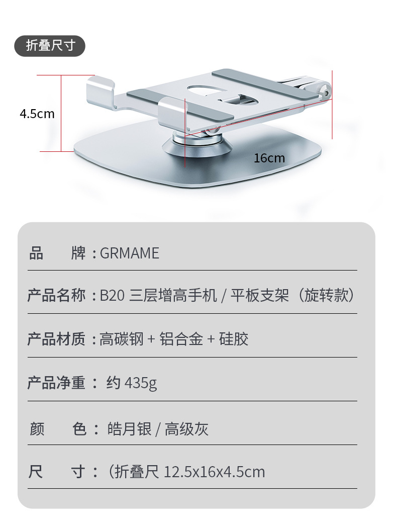 收納尺寸:160*125*45MM 包裝尺寸:13.5*4.5*17CM 凈重:435G