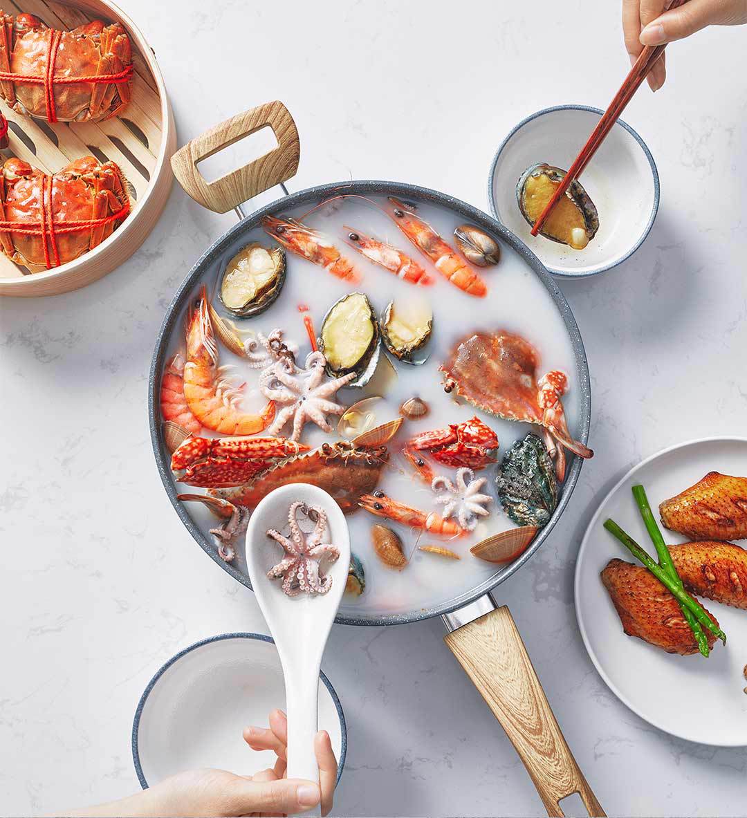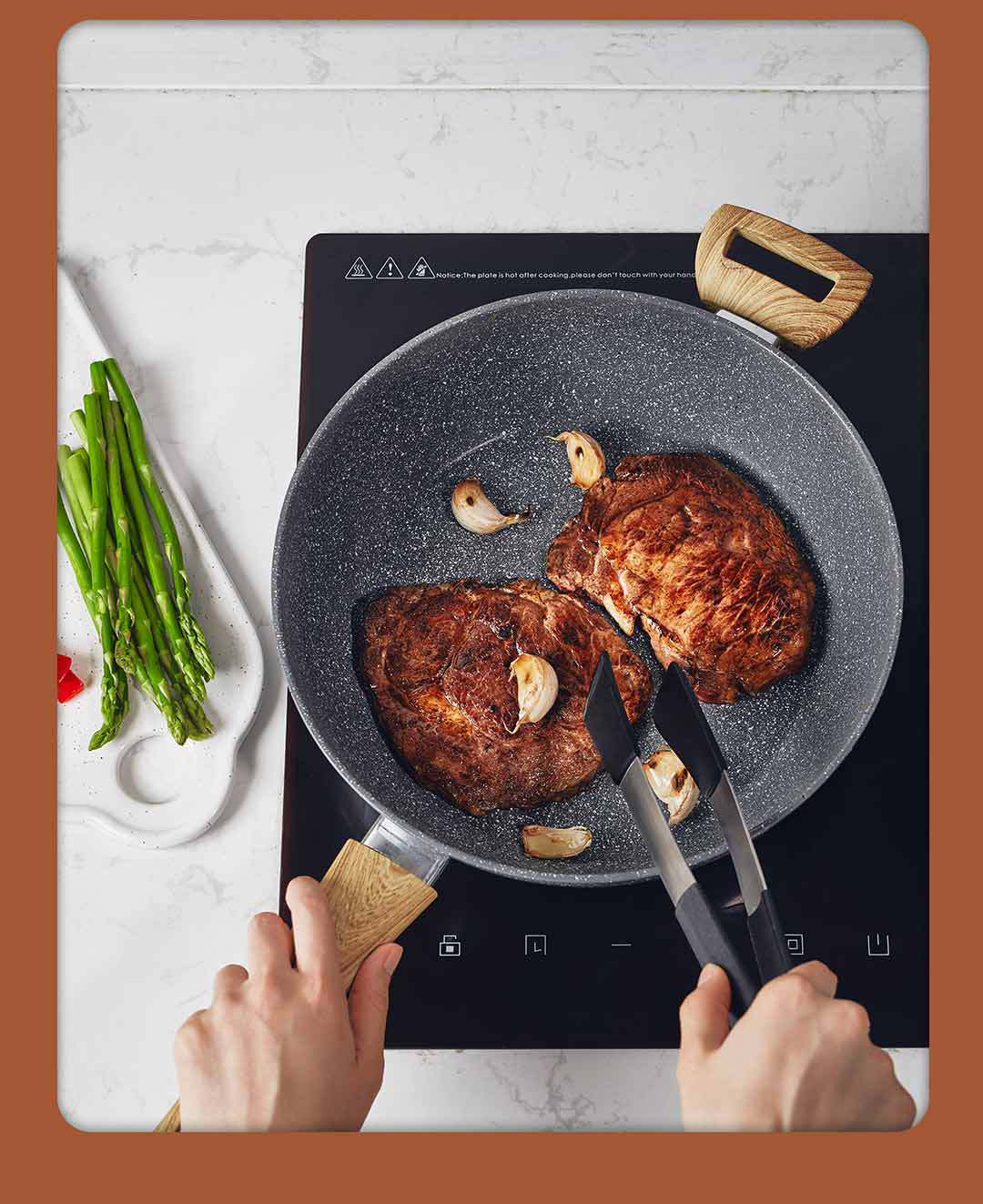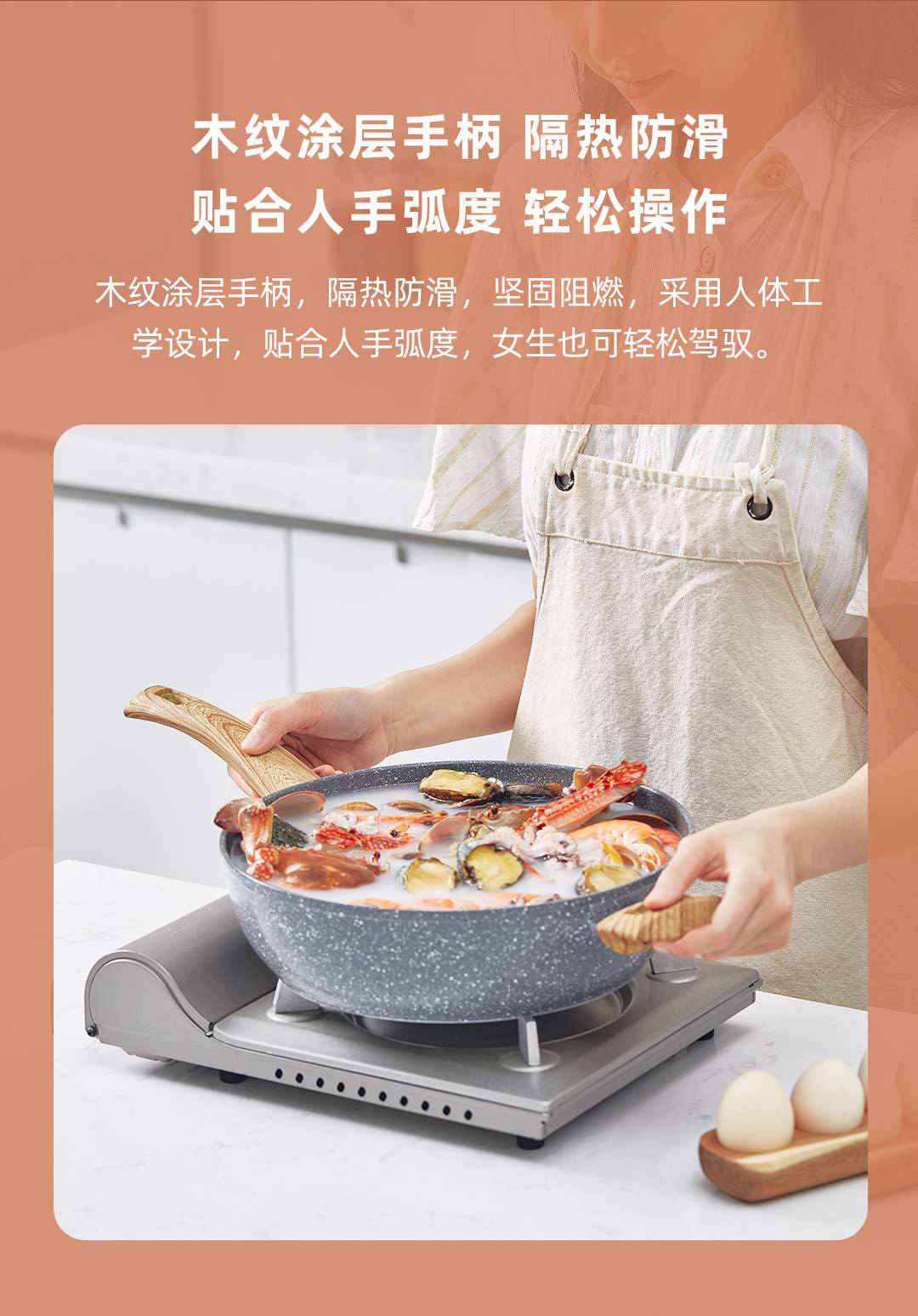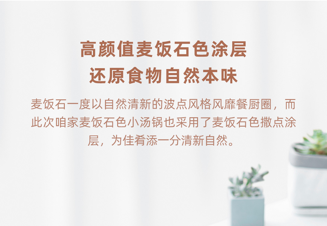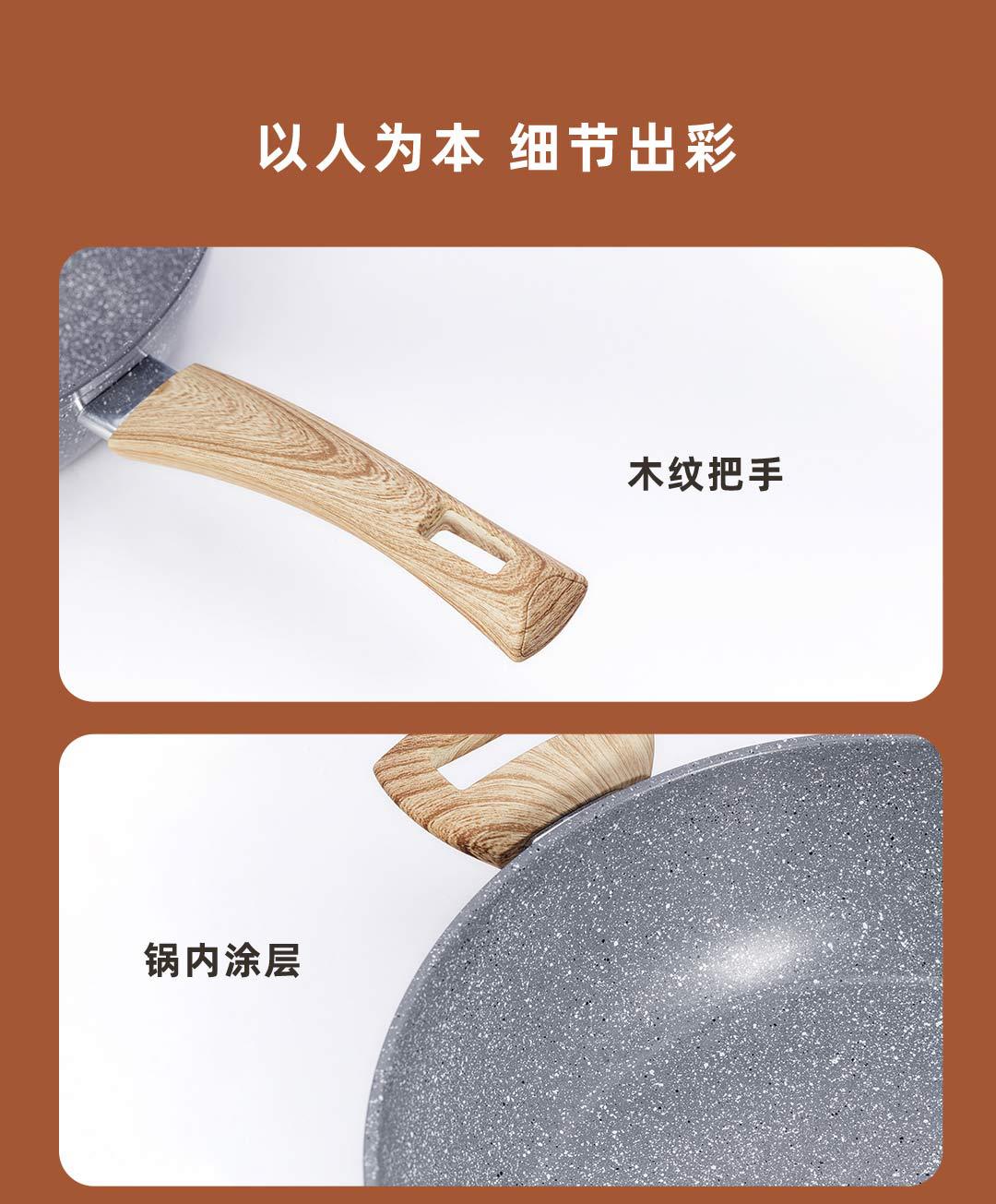 【關于材質】:小米有品旗下品牌"咱家”商品經過26道嚴格的生產工藝,表面食品級不粘層進口韓國大榮不粘技術,不含PFOA.加厚航空鋁合金基材,表面食品級麥飯石顆粒融合不粘工藝;導磁不銹鋼復底,不挑灶具、電磁爐燃氣通用。
