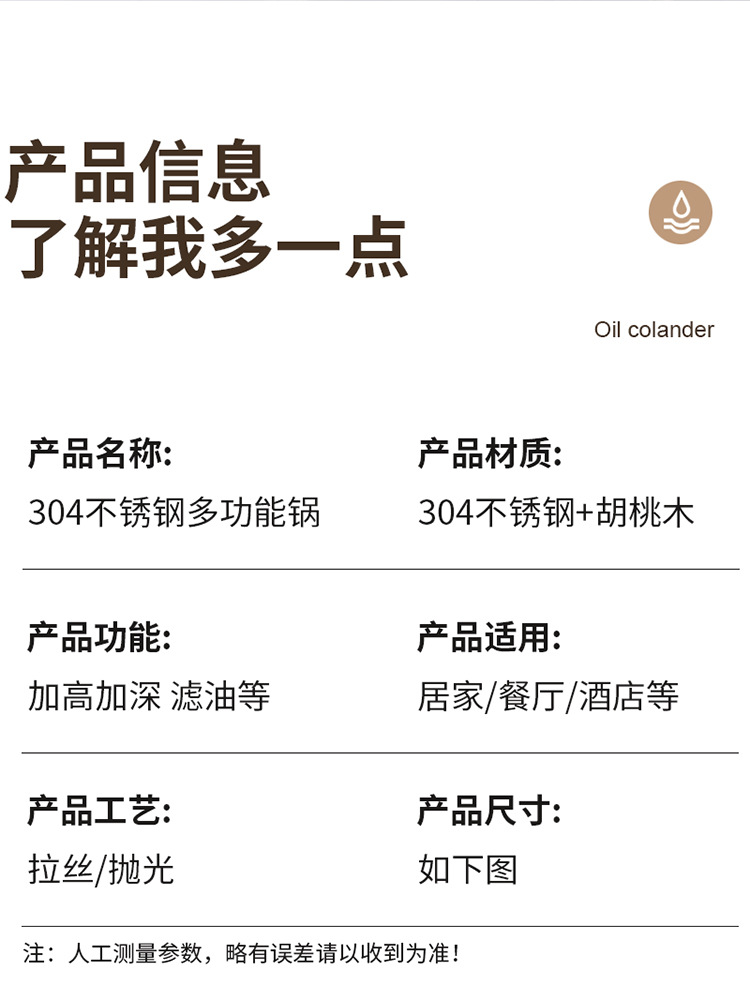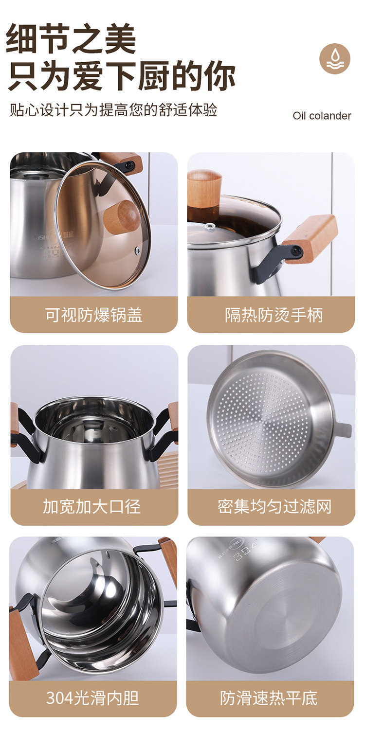 ●【產品材質】:高級不銹鋼材質,優質304不銹鋼,304濾油格,304鍋身