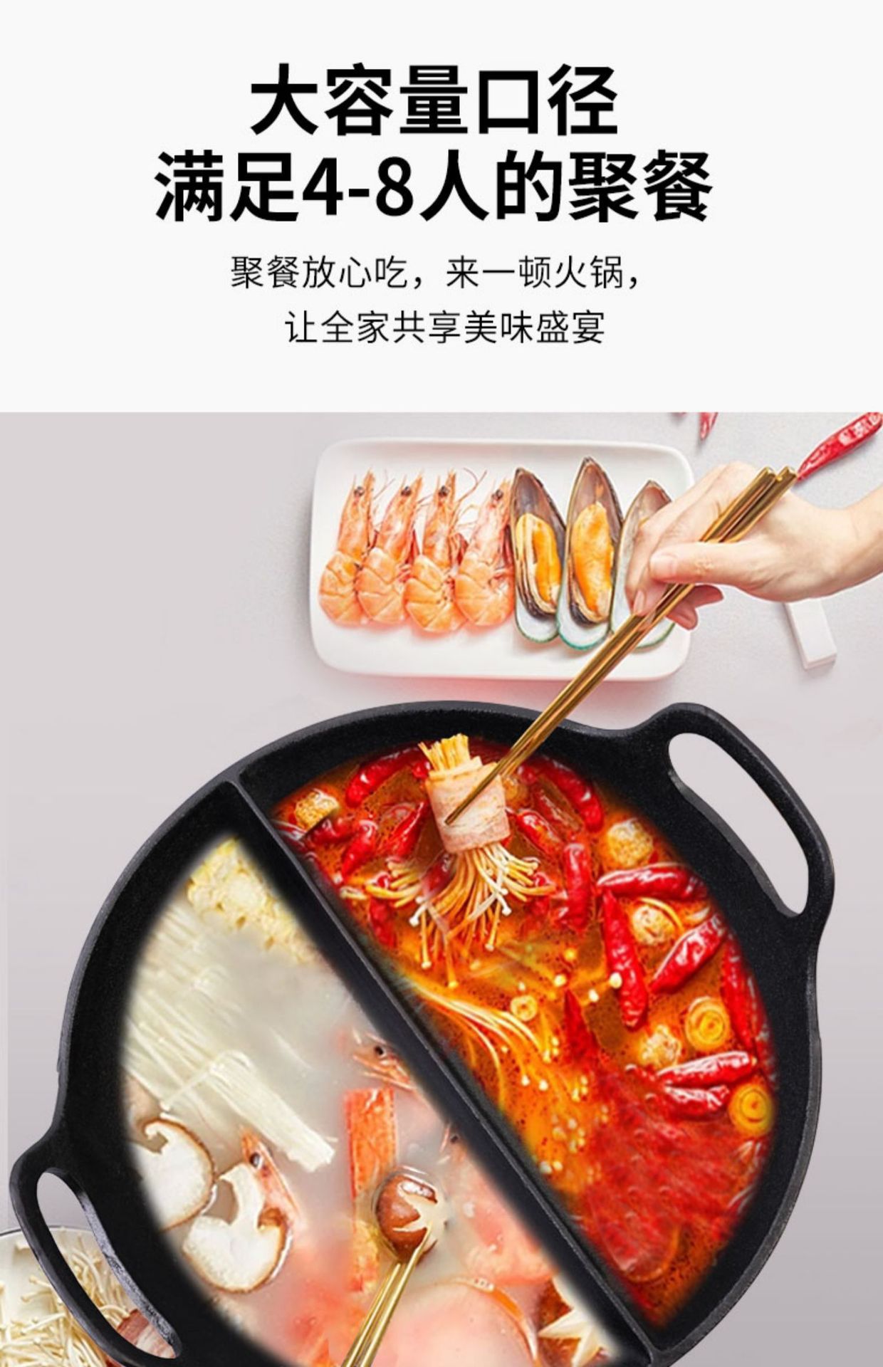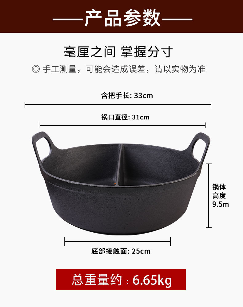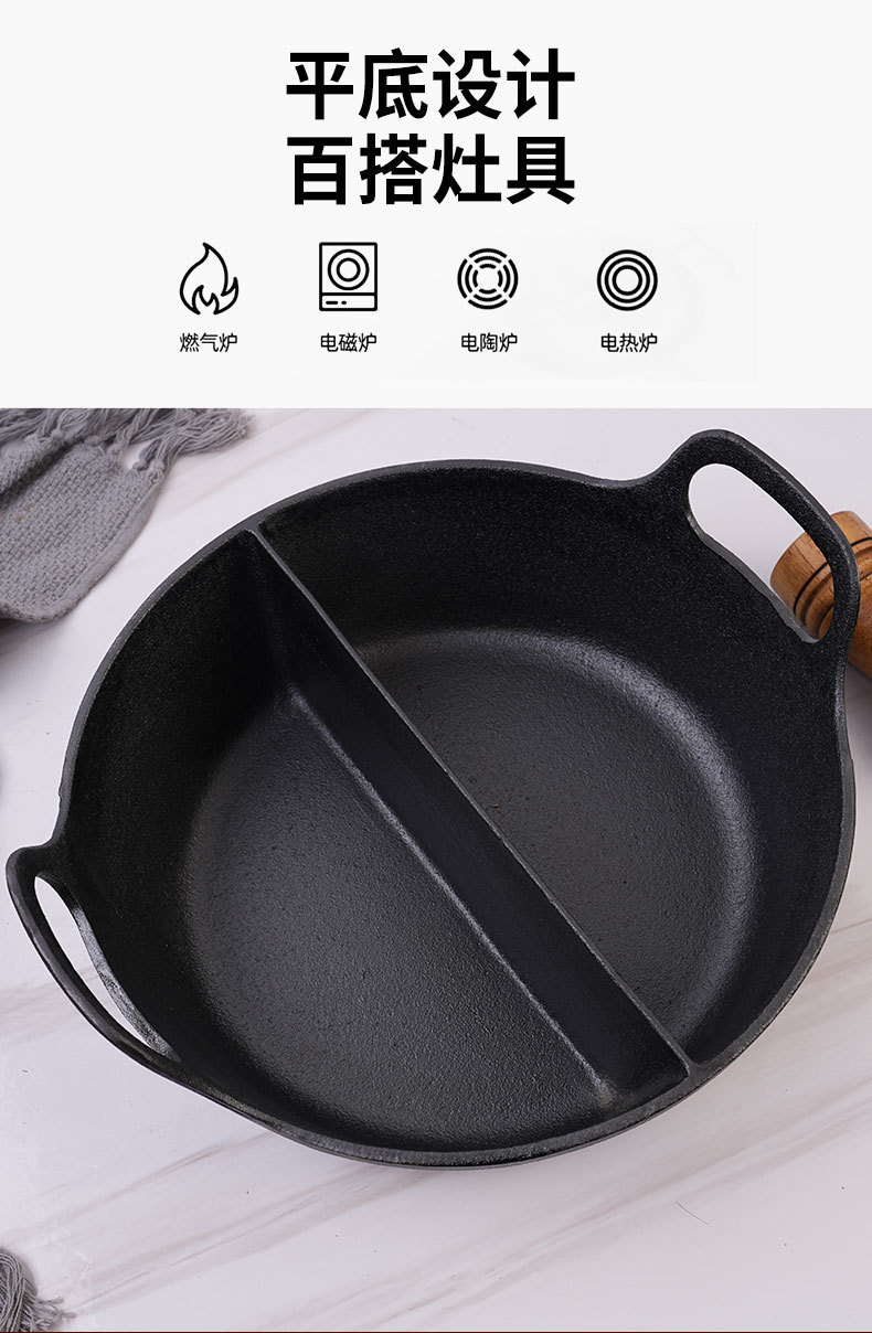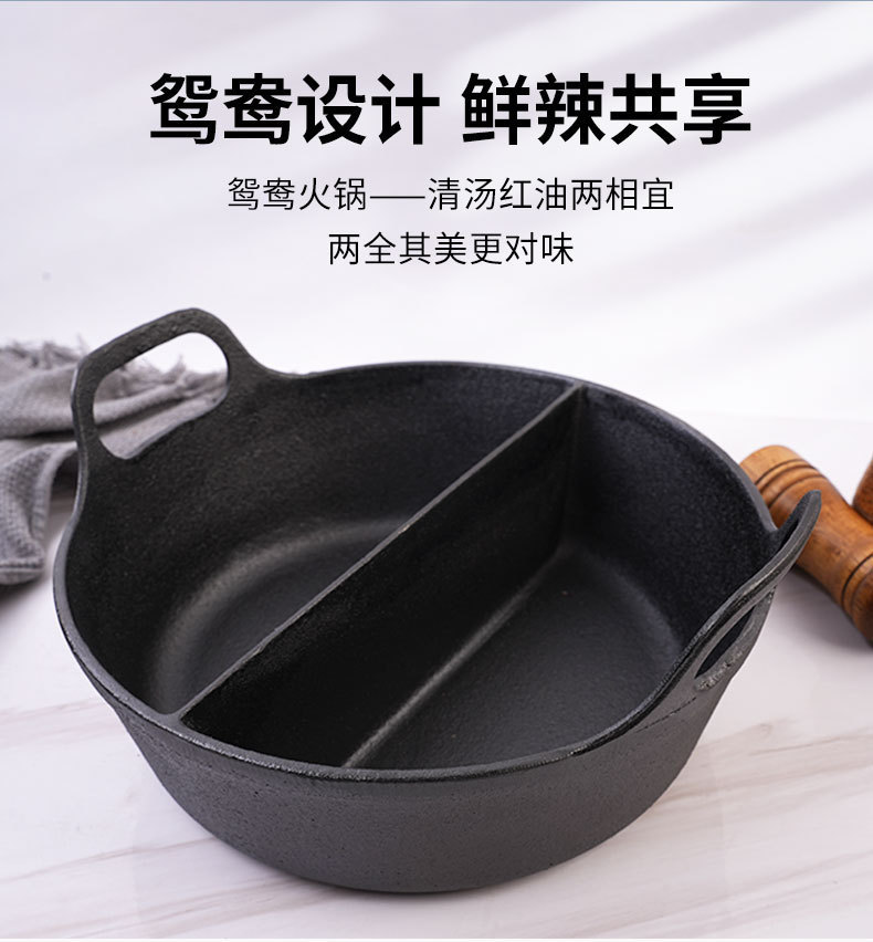 鑄鐵無涂層保溫火鍋餐廳自助餐無涂層30cm鴛鴦鍋湯鍋酒店定