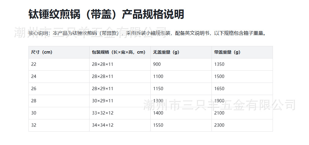 默認跨境定制拆裝小箱規,鈦錘紋煎鍋帶蓋,配套英文說明書