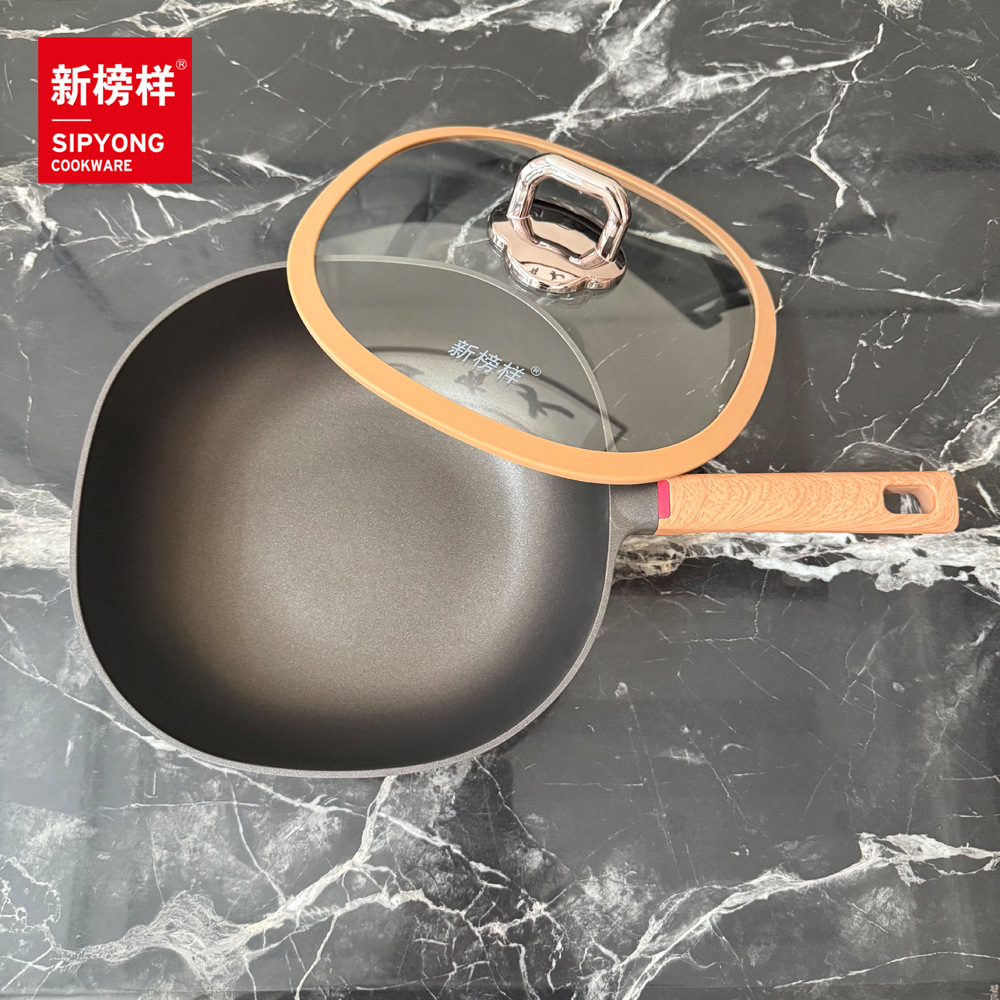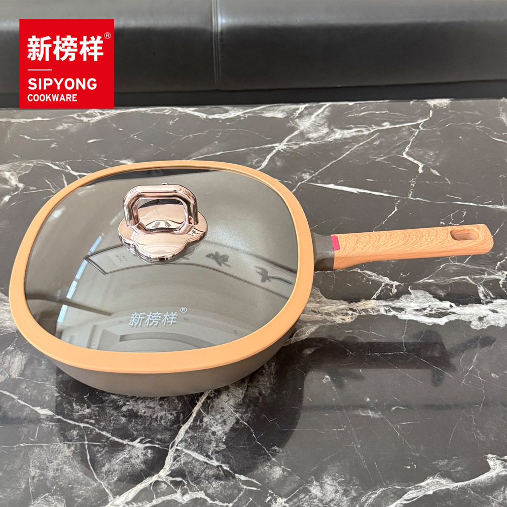 1、獨特方形設計:四方形鍋體,打破傳統圓形單調,擺在廚房就是顏值擔當,小鍋口大容量,翻炒不濺出,裝菜更能 “裝”;