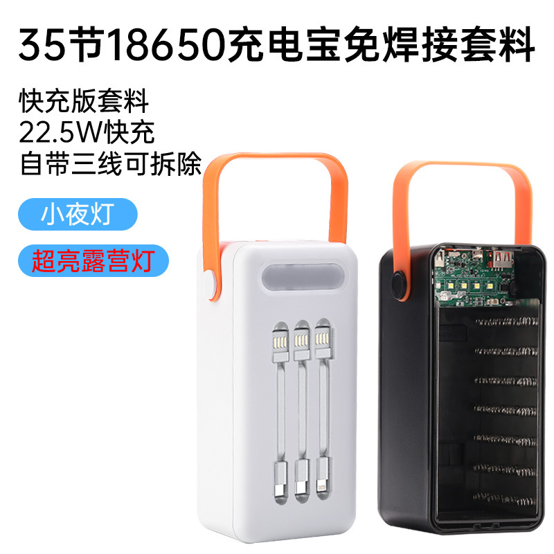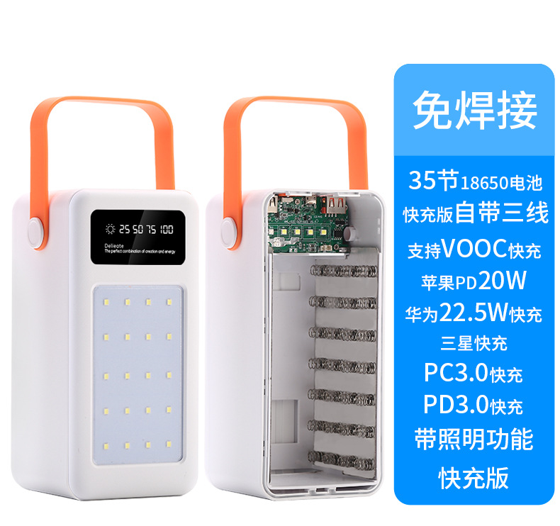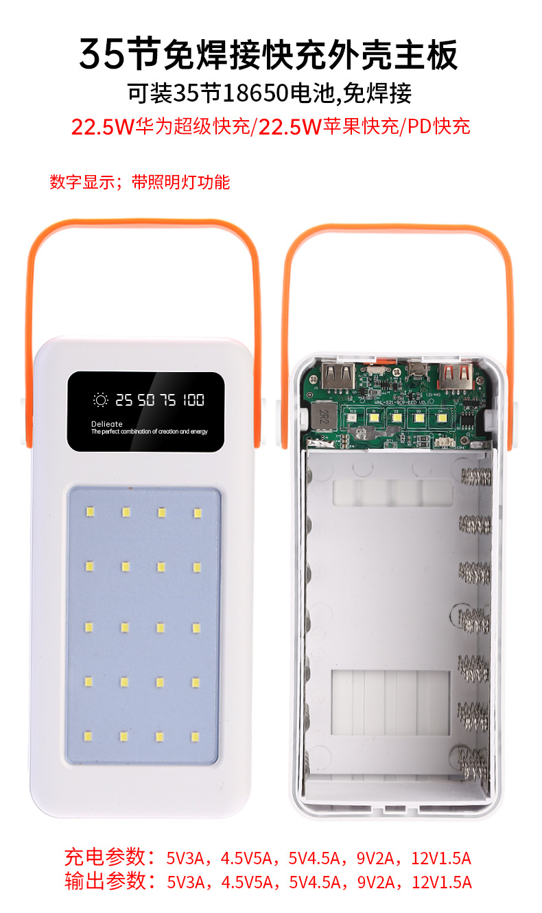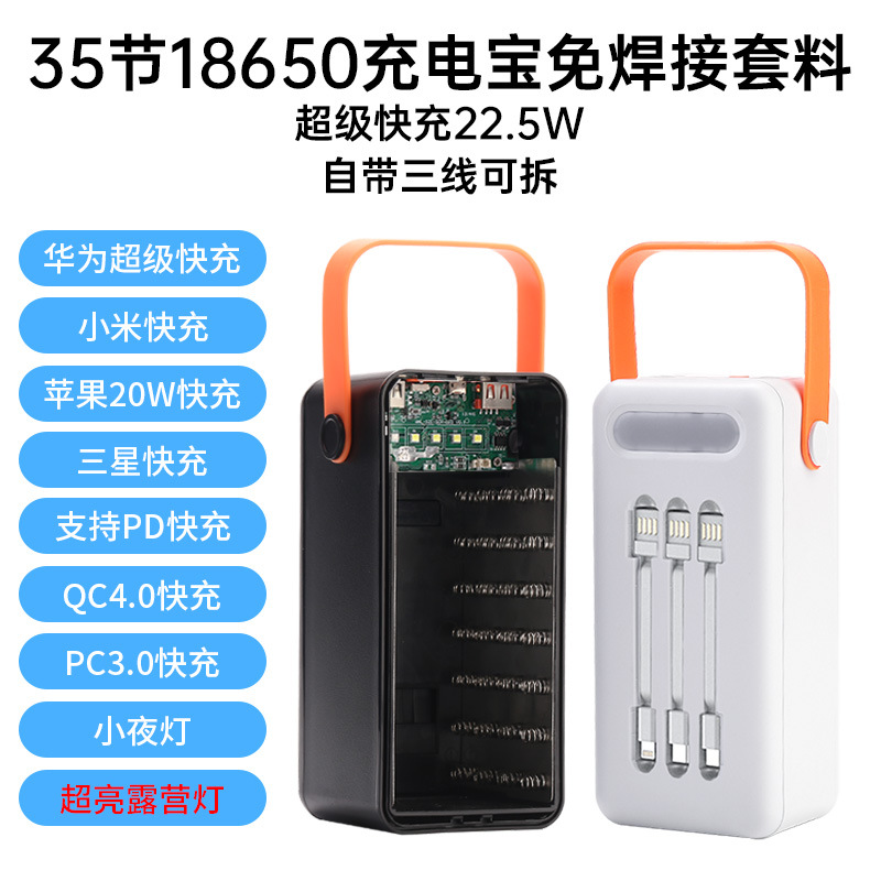 閃充版22.5W, 標準版10W, 有2種線路板可選, 35節18650平頭電池移動電源免焊接套料不含電池,支持VOOC快充蘋果20W,華為22.5W , 三星快充 小米OPPO vivo快充