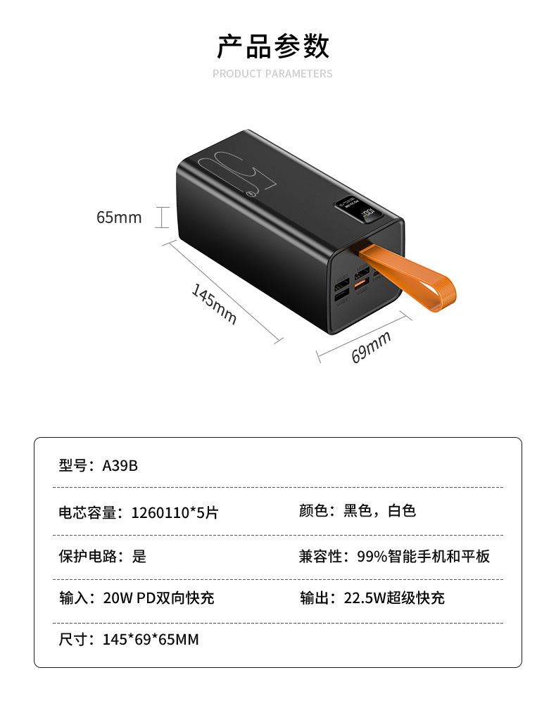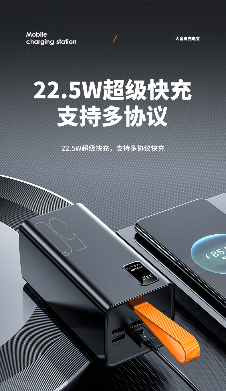 最新款跨境超薄便攜一萬超級快充充電寶10000mah USB-C Type-C雙向快充適用于蘋果15 15plus 15pr max 三星 華為 小米 OPPO系列QC 3.0 PD 22.5W閃充