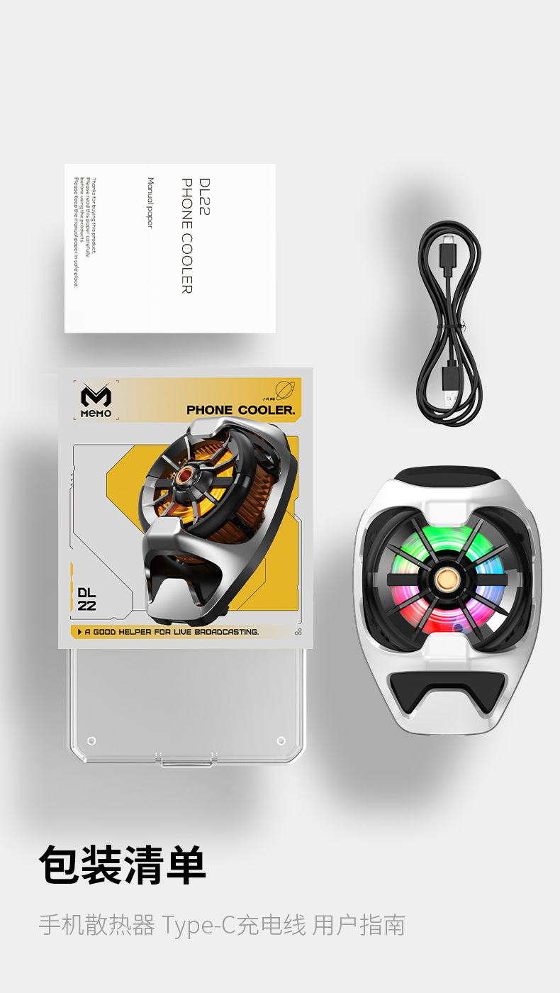 包裝清單:制冷夾+1米充電線+說明書+封套