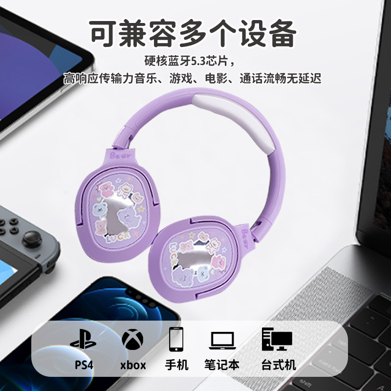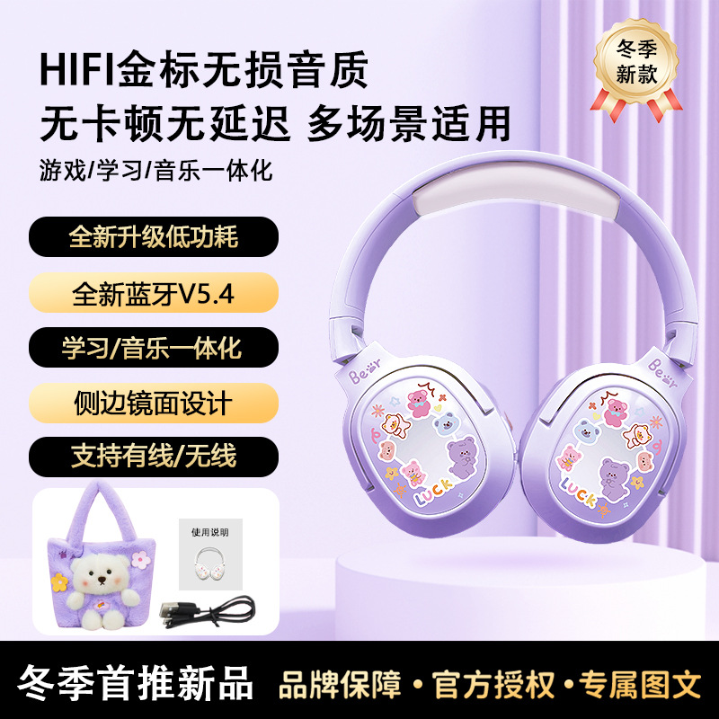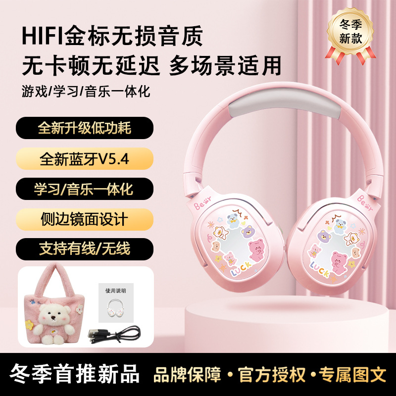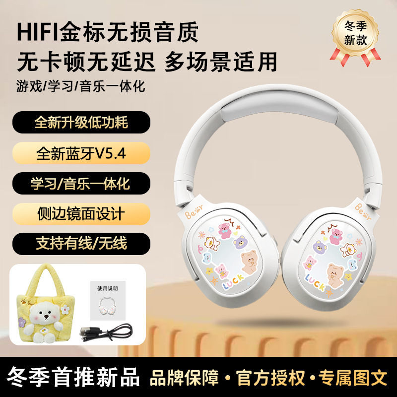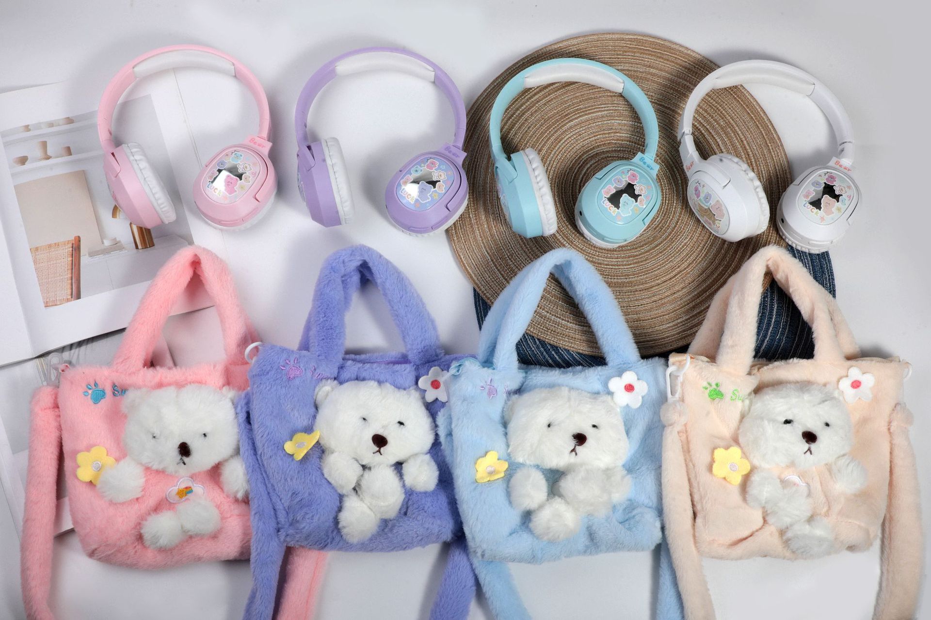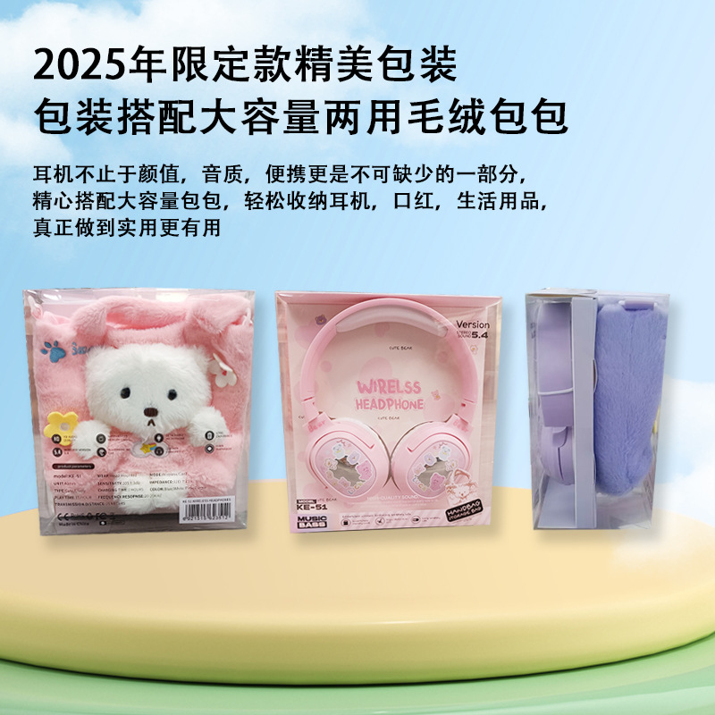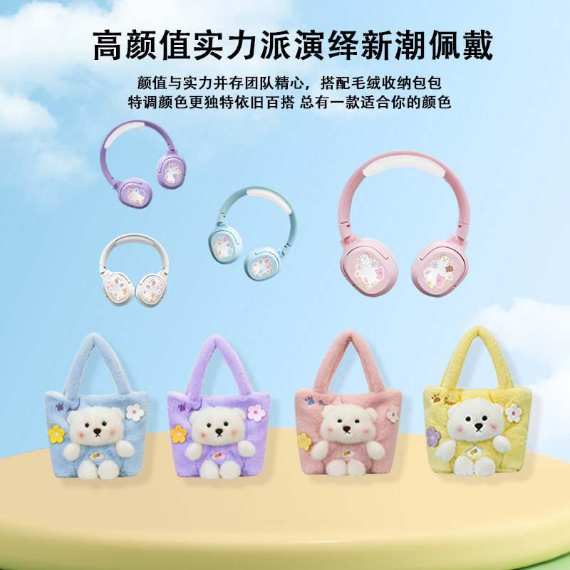 毛絨絨小熊手提袋頭戴式藍牙耳機