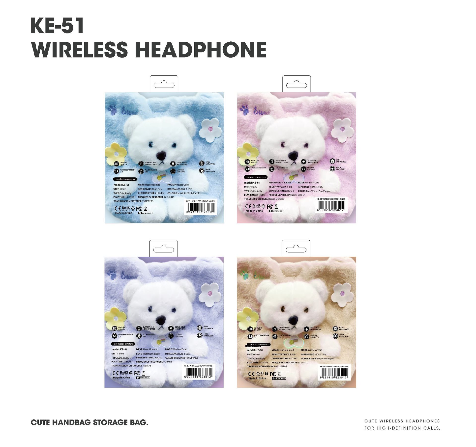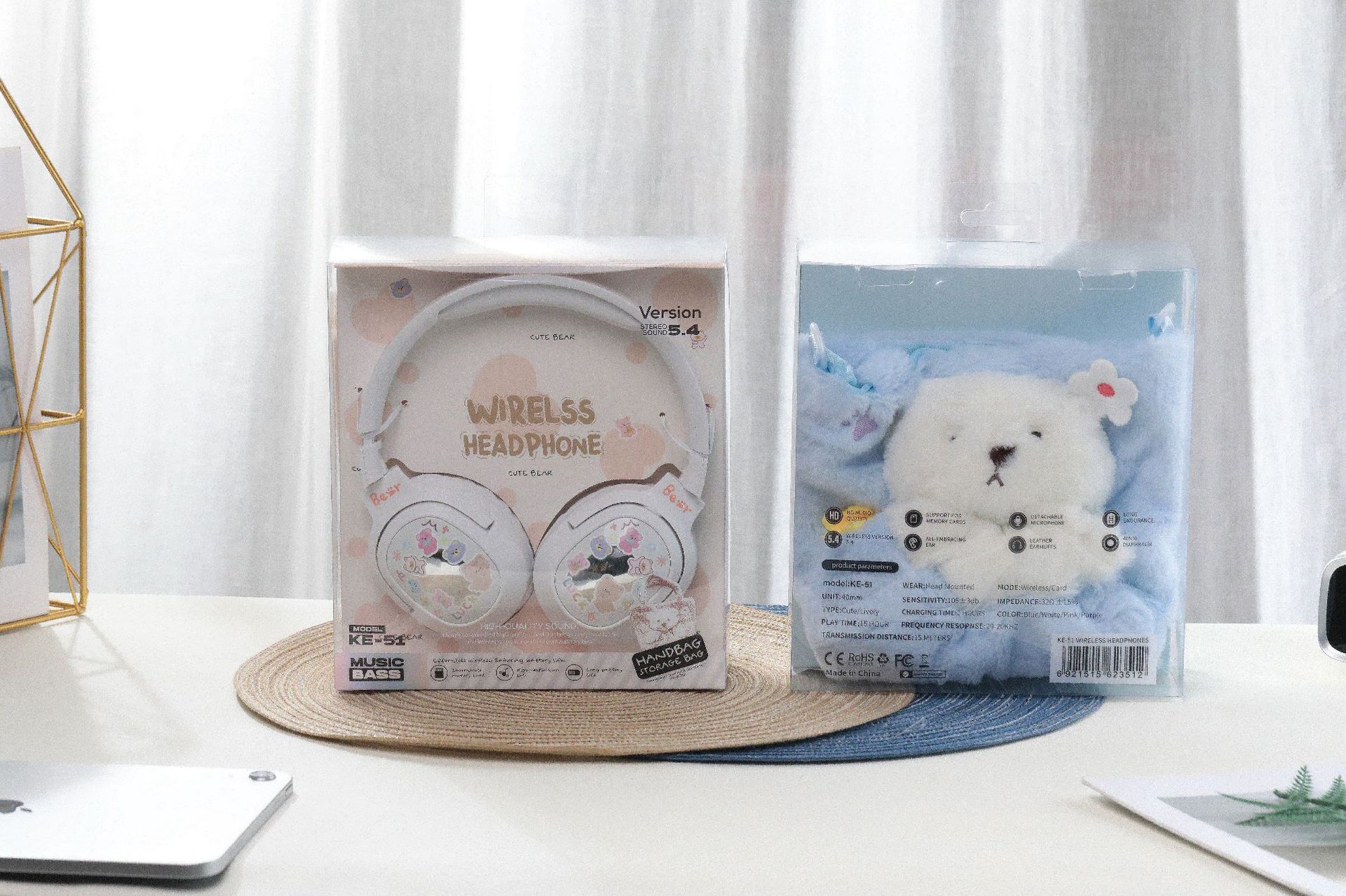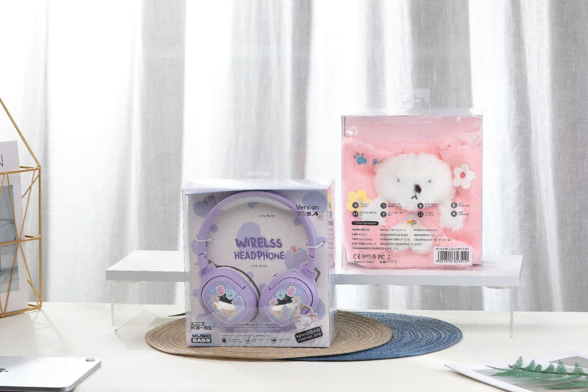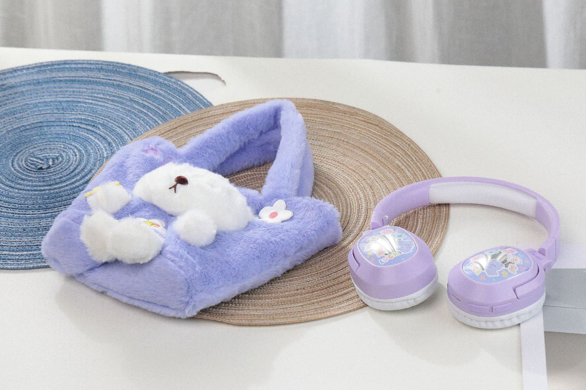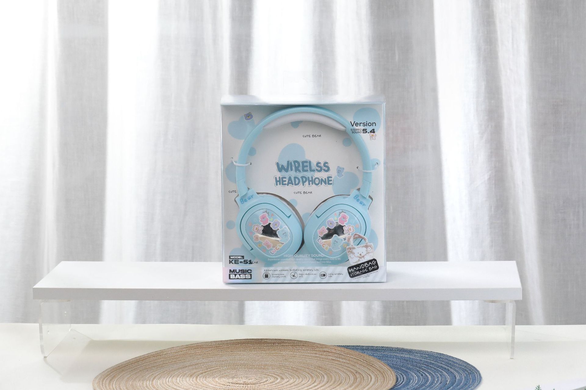 毛絨絨小熊手提袋頭戴式藍牙耳機
