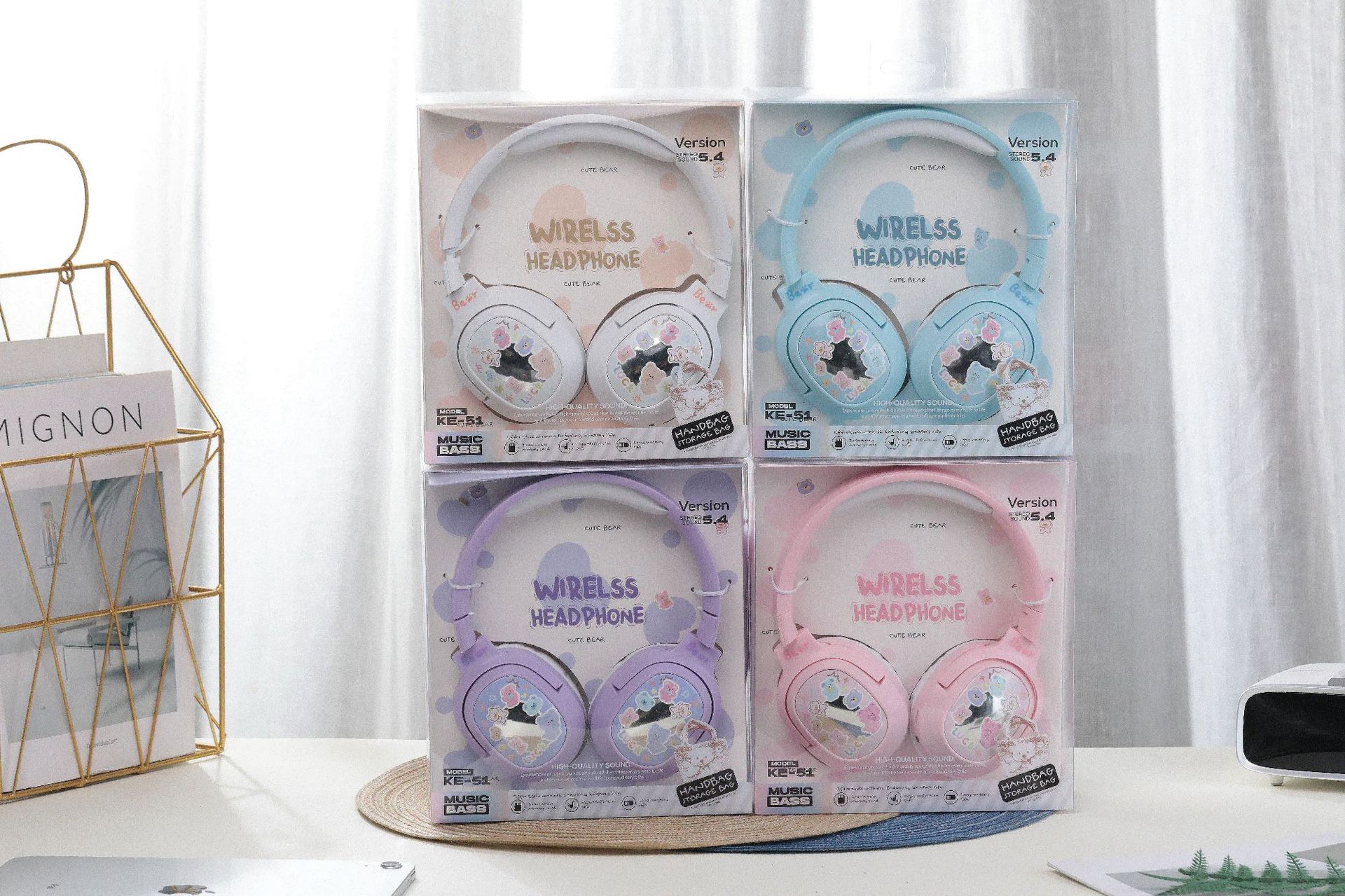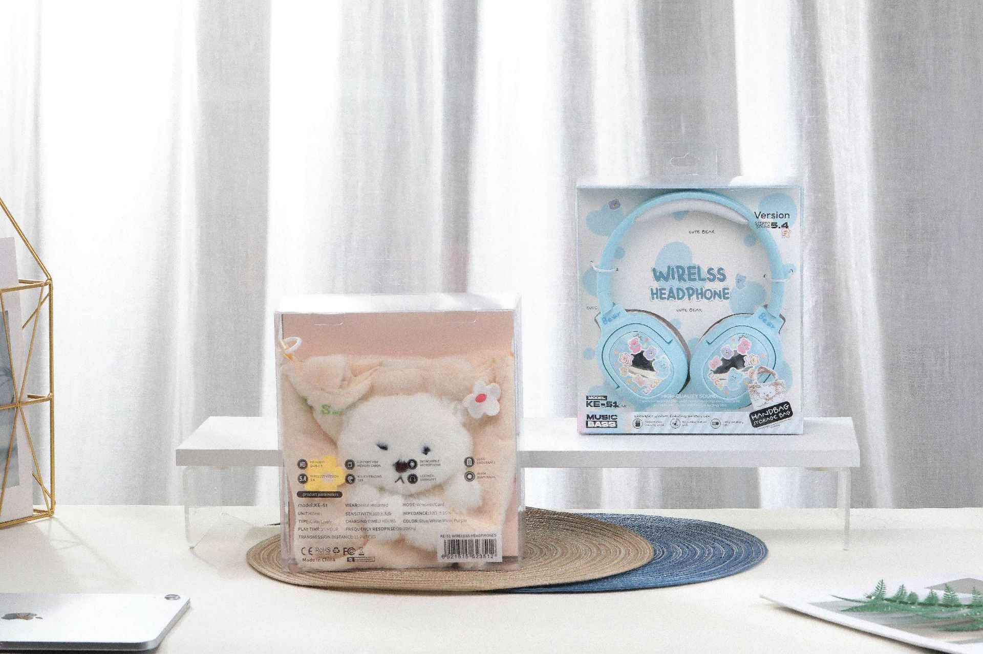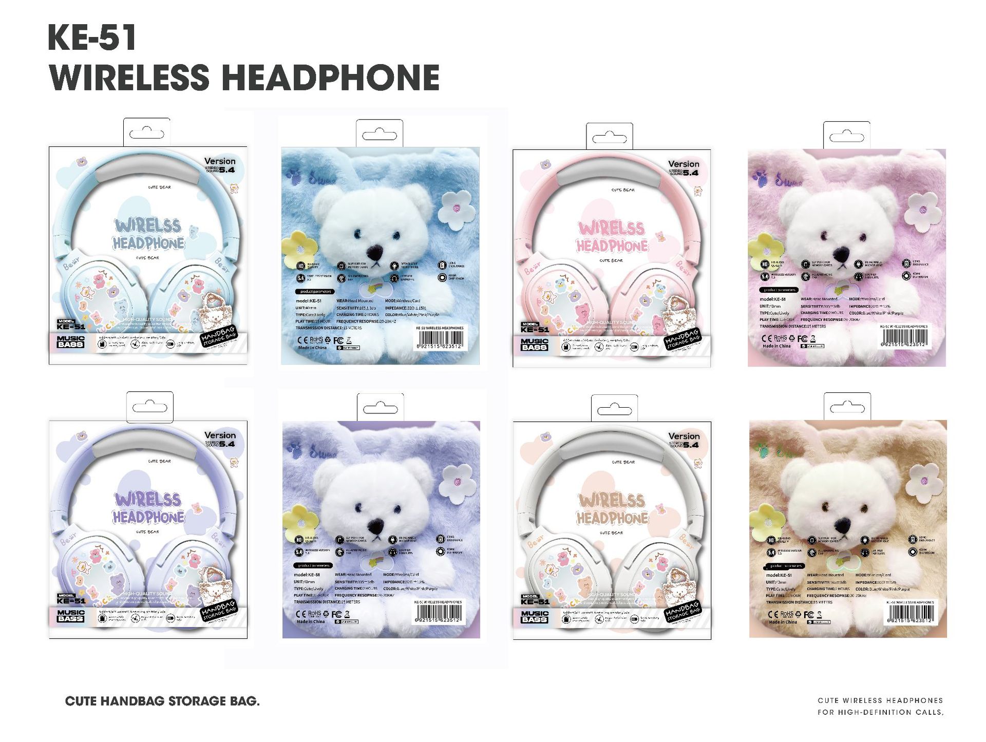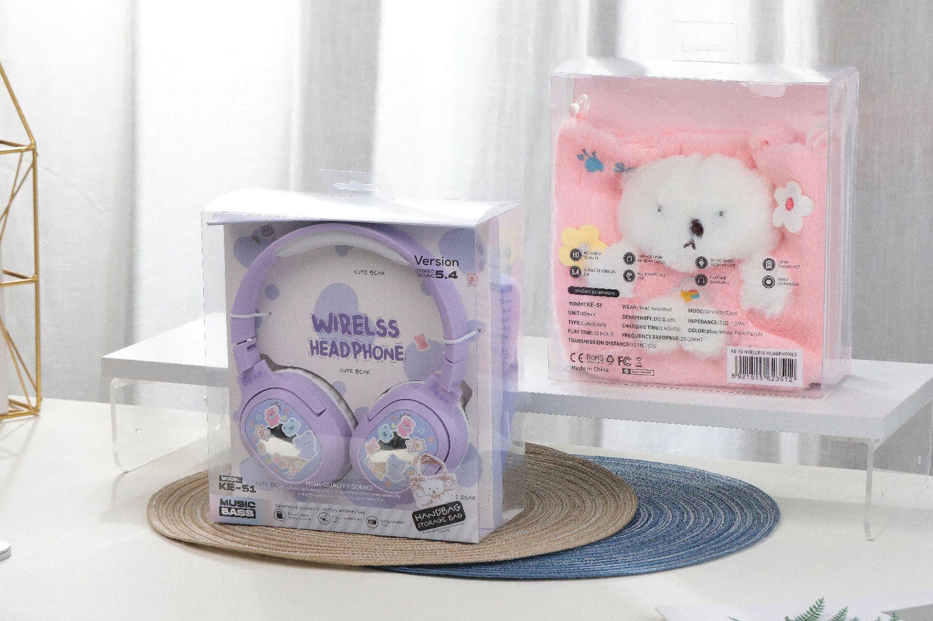 毛絨絨小熊手提袋頭戴式藍牙耳機