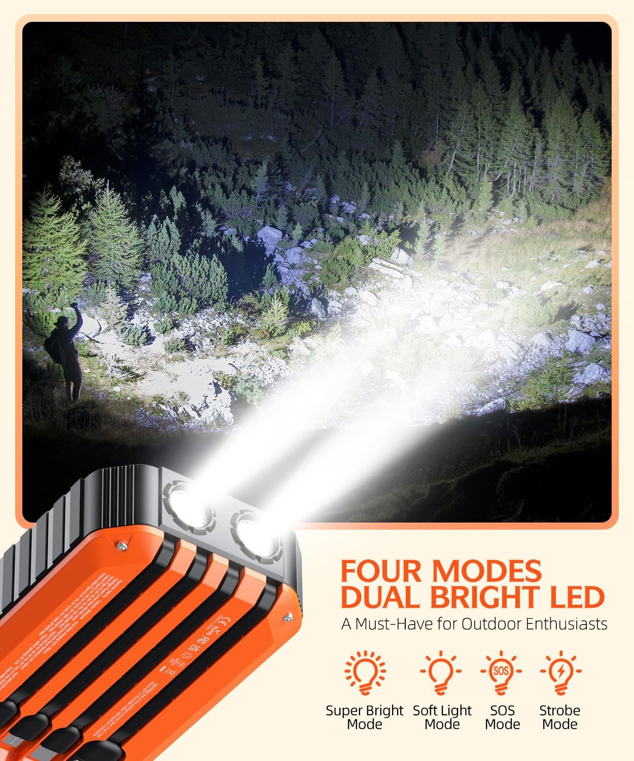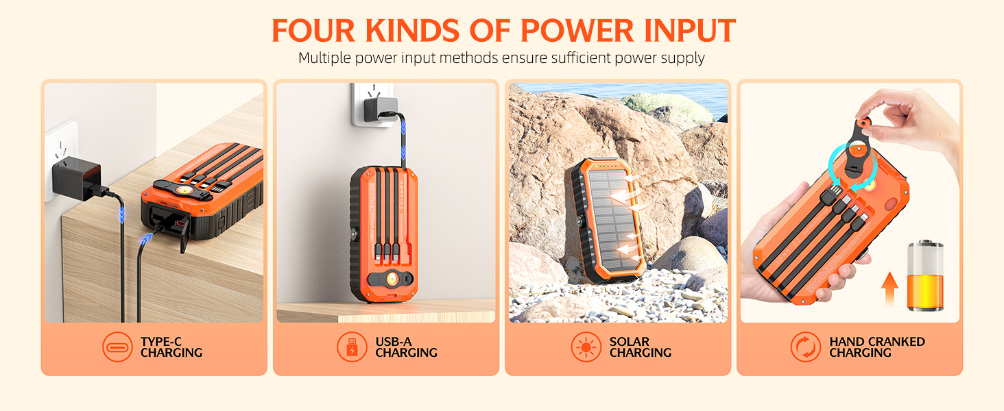 【品 名】:自帶4線強光手電筒太陽能加手搖發電移動電源