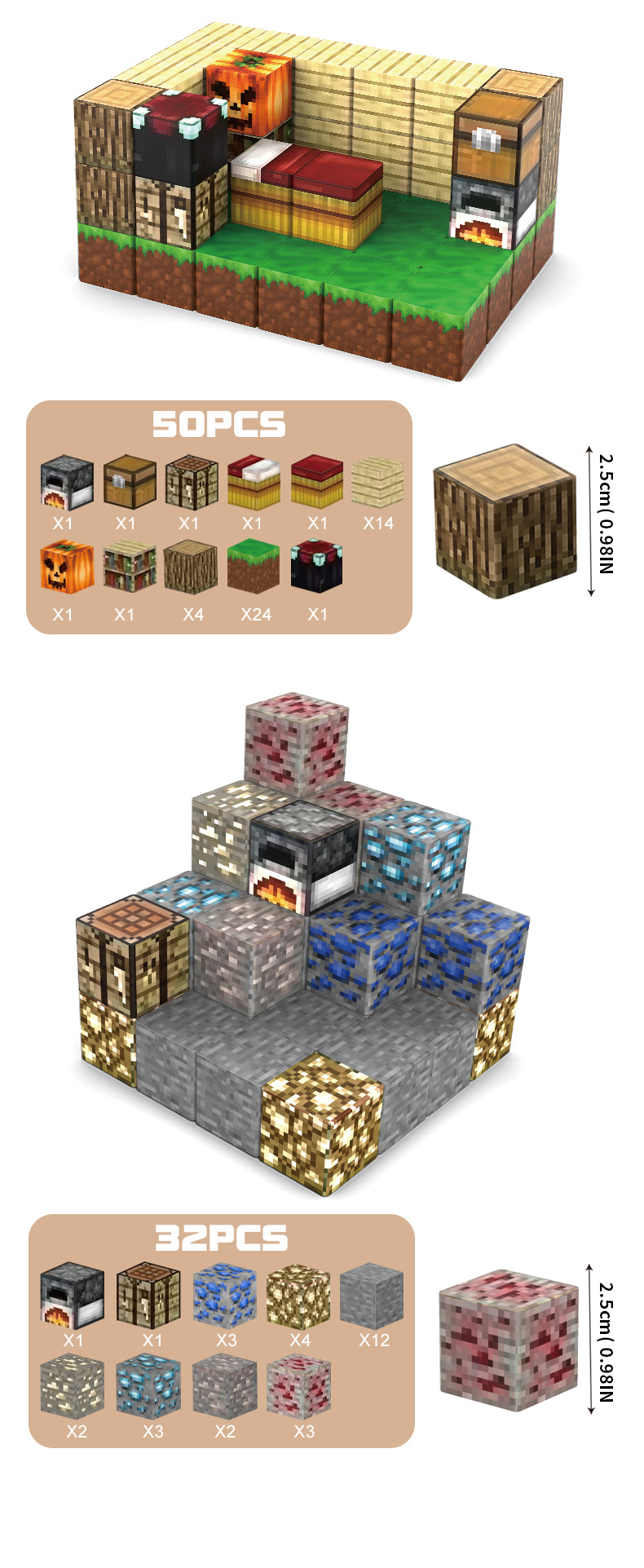 方塊尺寸:2.5*2.5*2.5