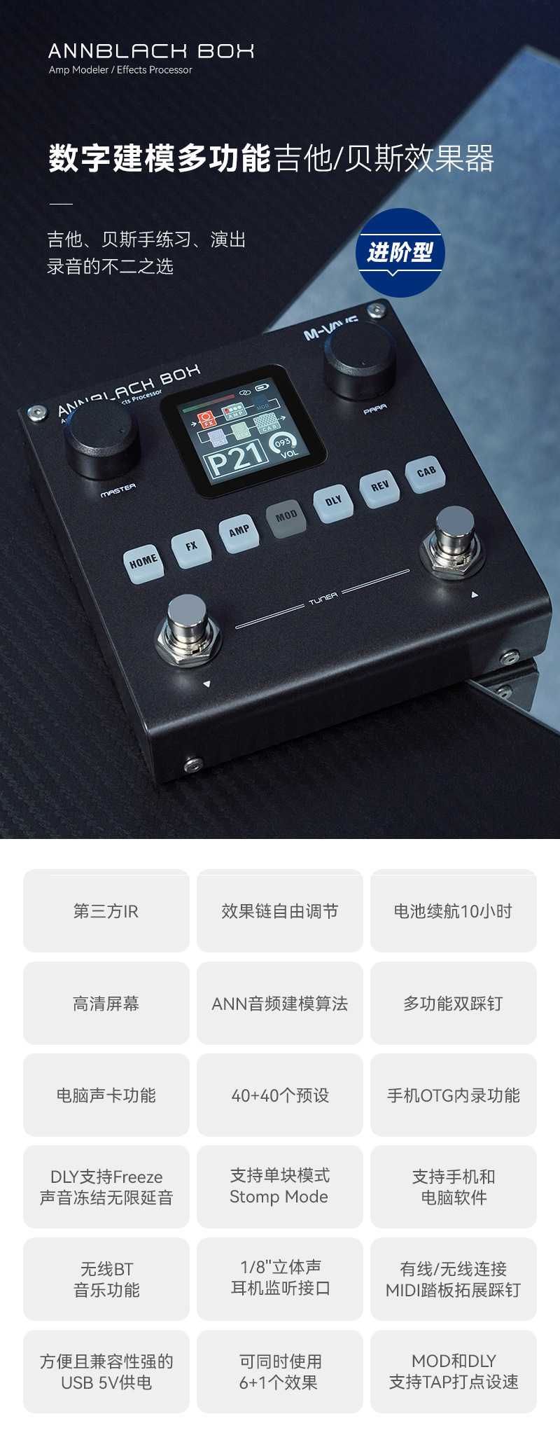 吉他效果器系列產品包裝為單個紙盒包裝,電源適配器需要另行購買,支持各種規格適配器。
