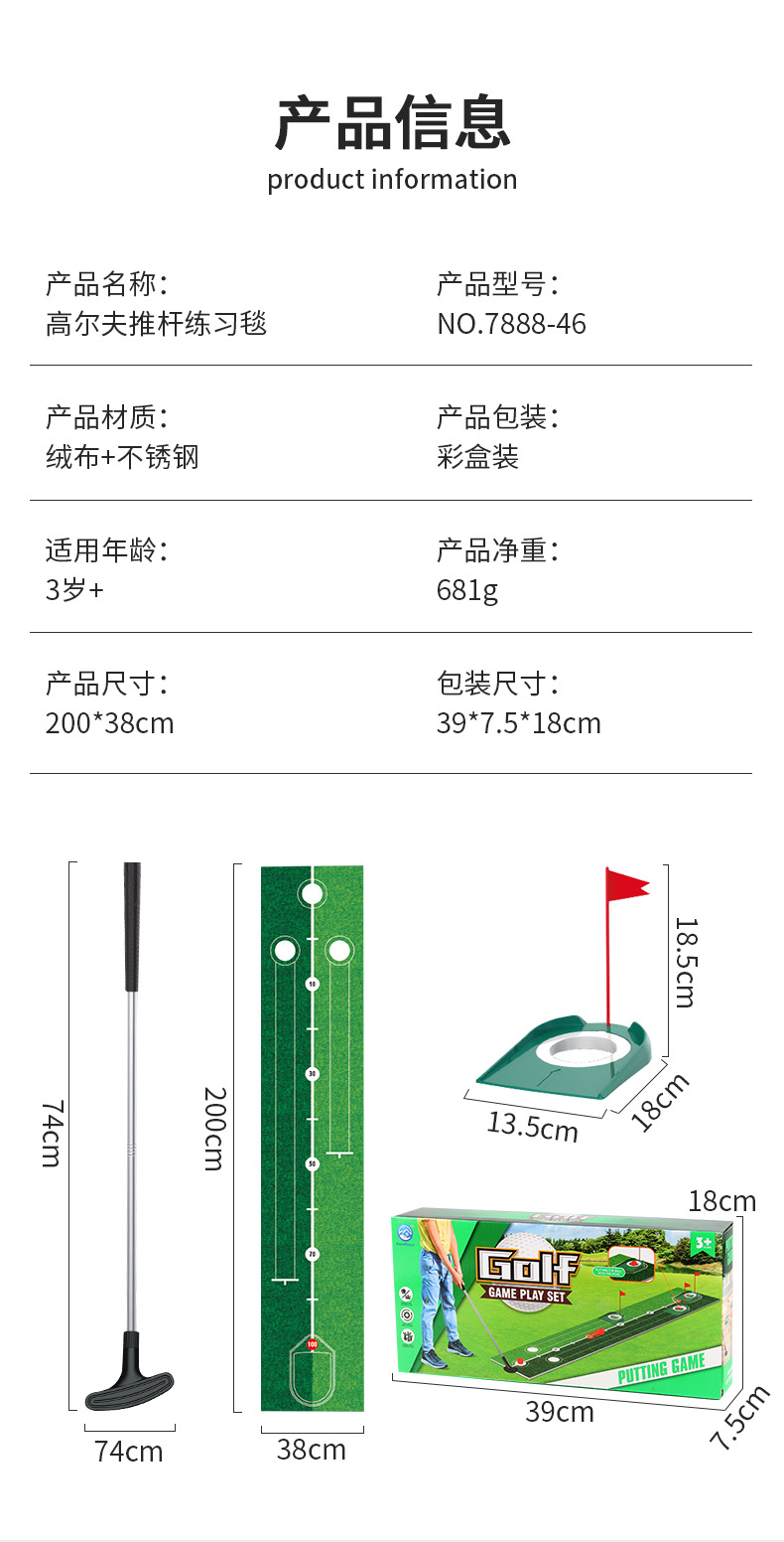 7888-46高爾夫推桿練習毯 681g