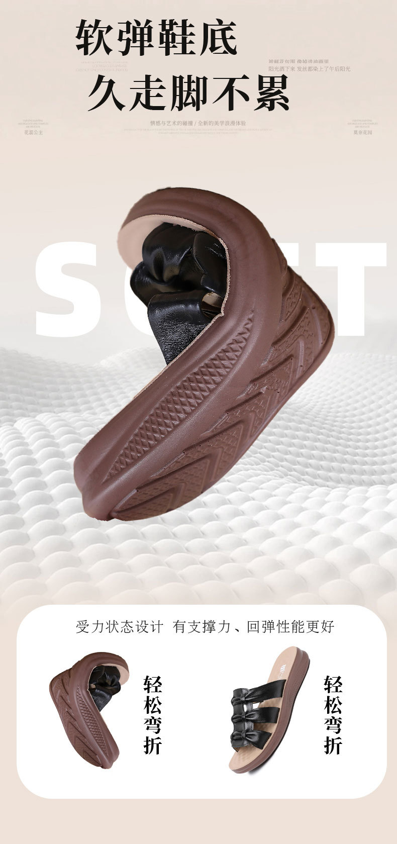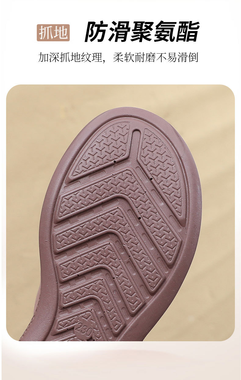 采用聚氨酯軟底,媽媽鞋專用鞋底,輕質防滑耐磨不累腳。