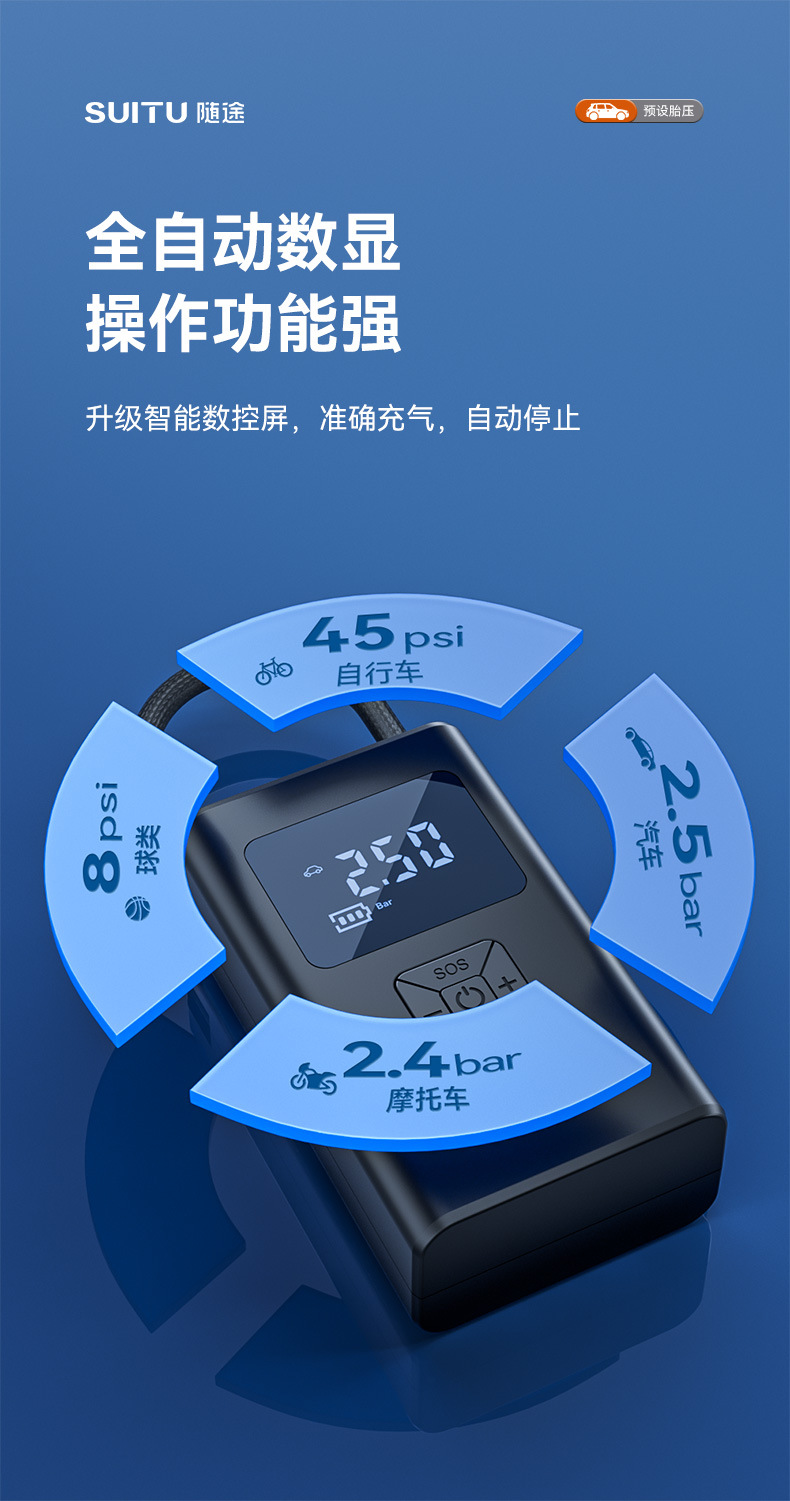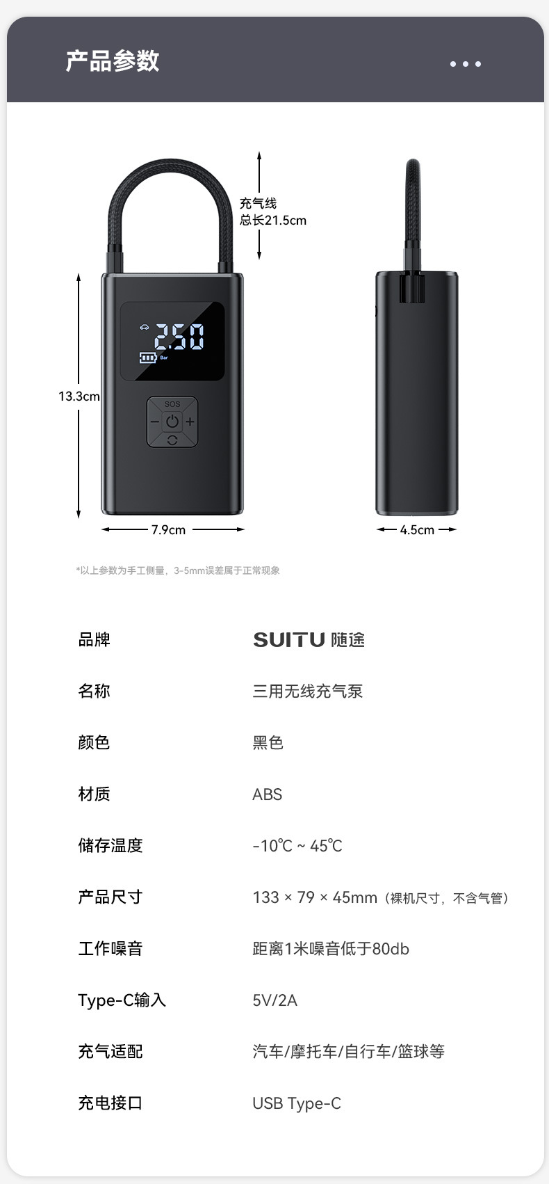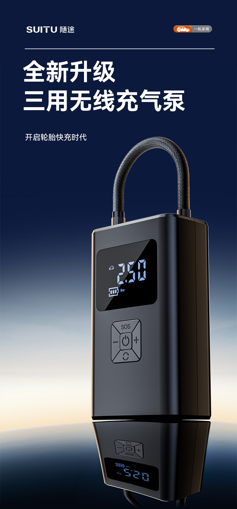 【ST-5522C】三用無線充氣泵+USB+DC 無線