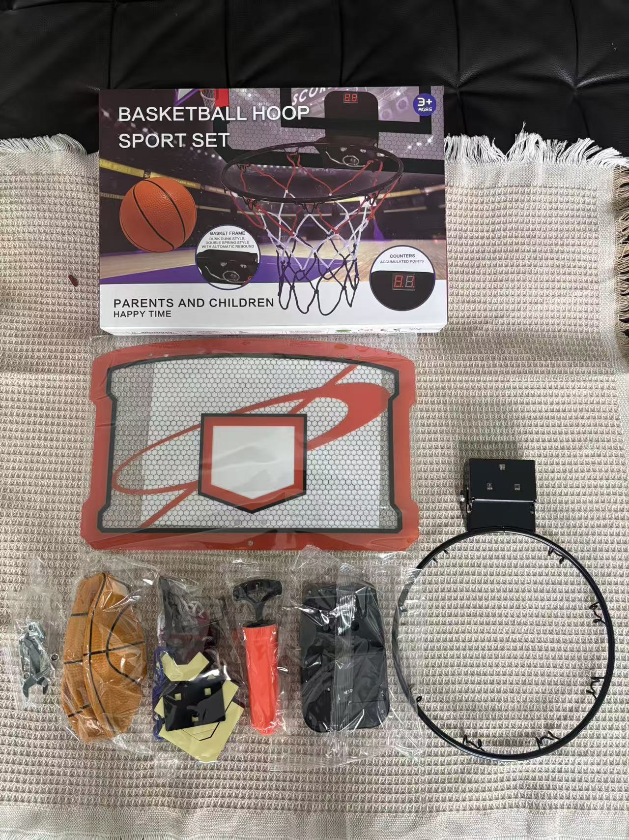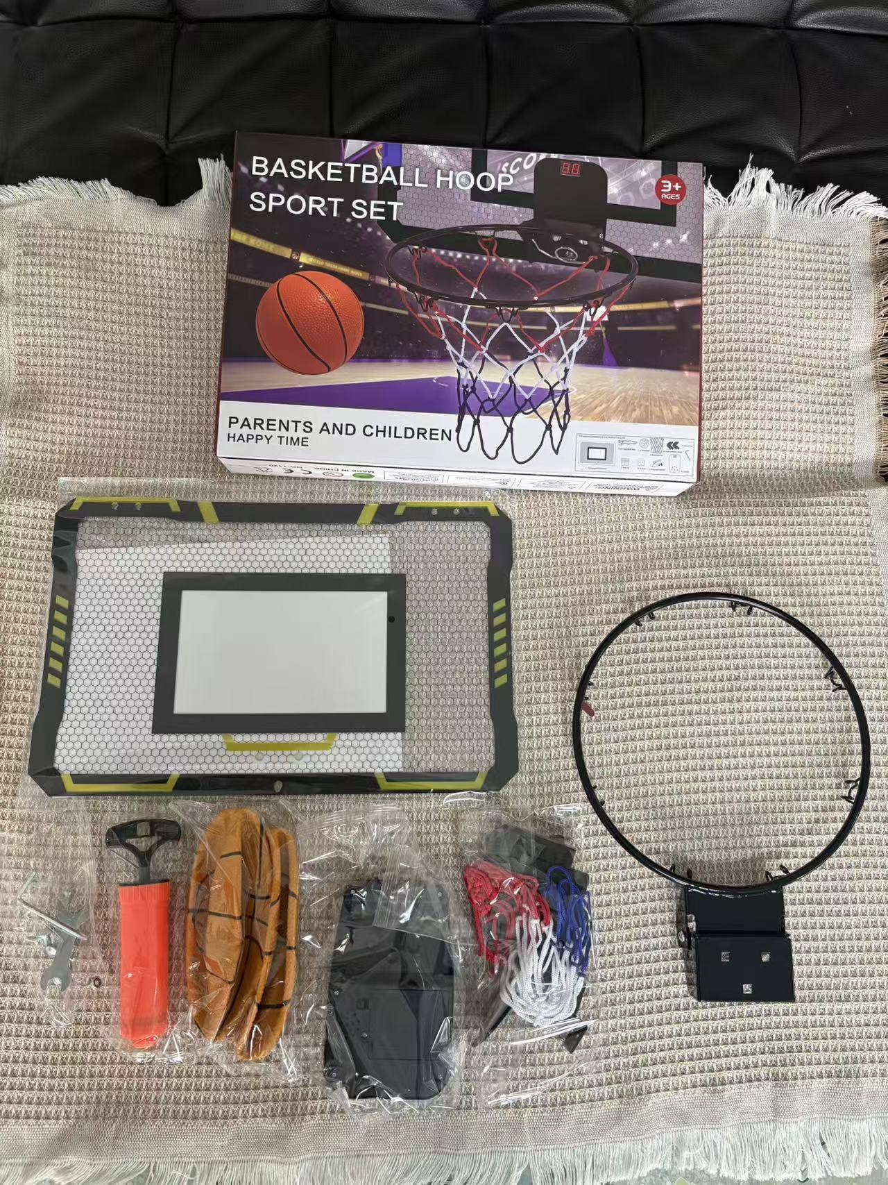 該產品是中性款,彩盒不帶我們的logo,籃球板是亞克力,籃筐是純金屬