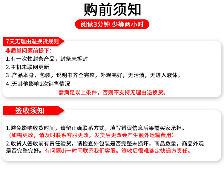 若商品存在瑕疵,請於簽收後7日內提出申請,並提供全程拆封錄影作為依據。商品是否為瑕疵將由廠商最終確認。運輸過程中的輕微碰撞痕跡不影響使用,不屬於瑕疵範疇。 - 拒收包裹的後果