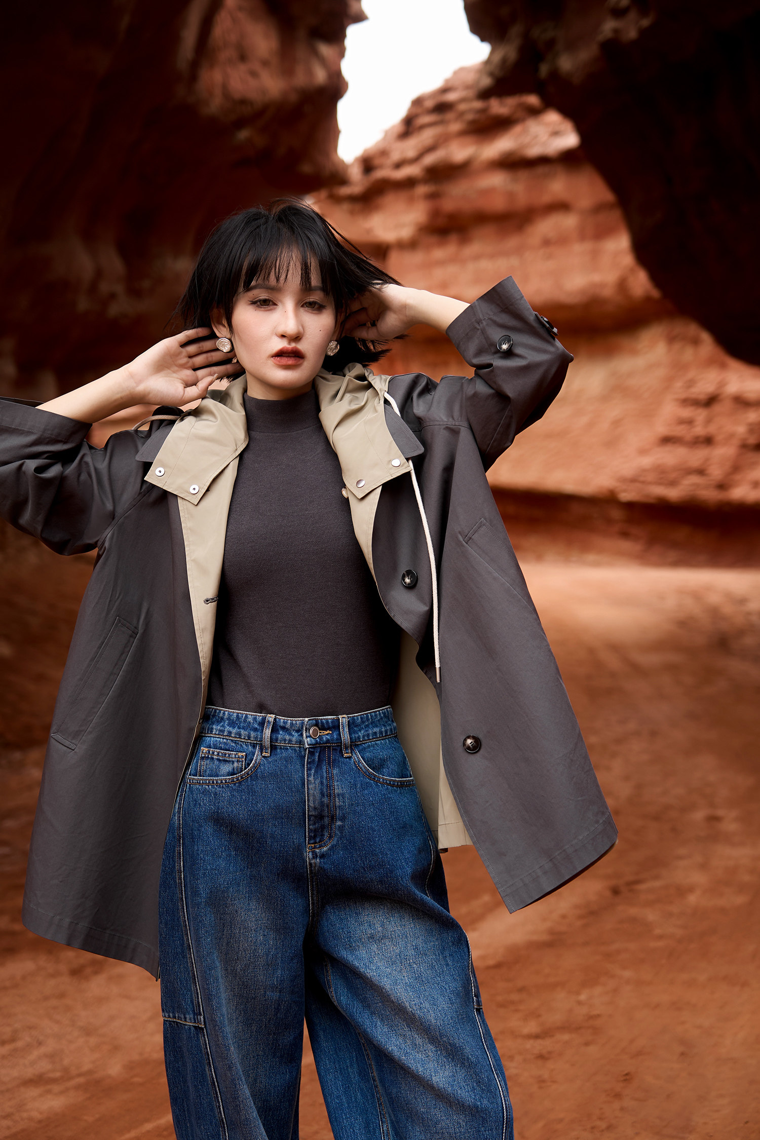 這款連帽雙面穿風衣抒寫miu風松弛趣致