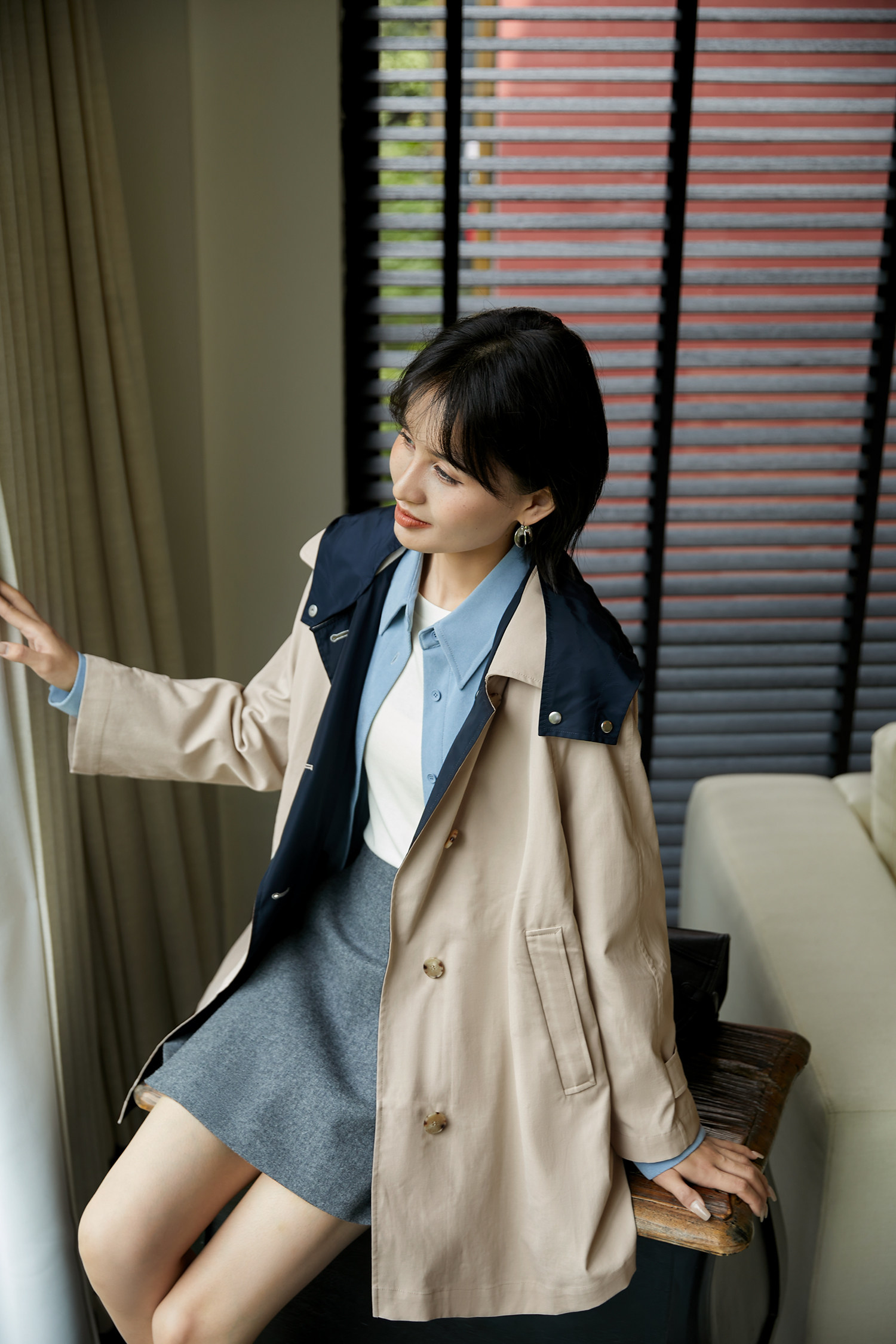 伯爵茶米色與藏青的撞色組合沉穩雅致