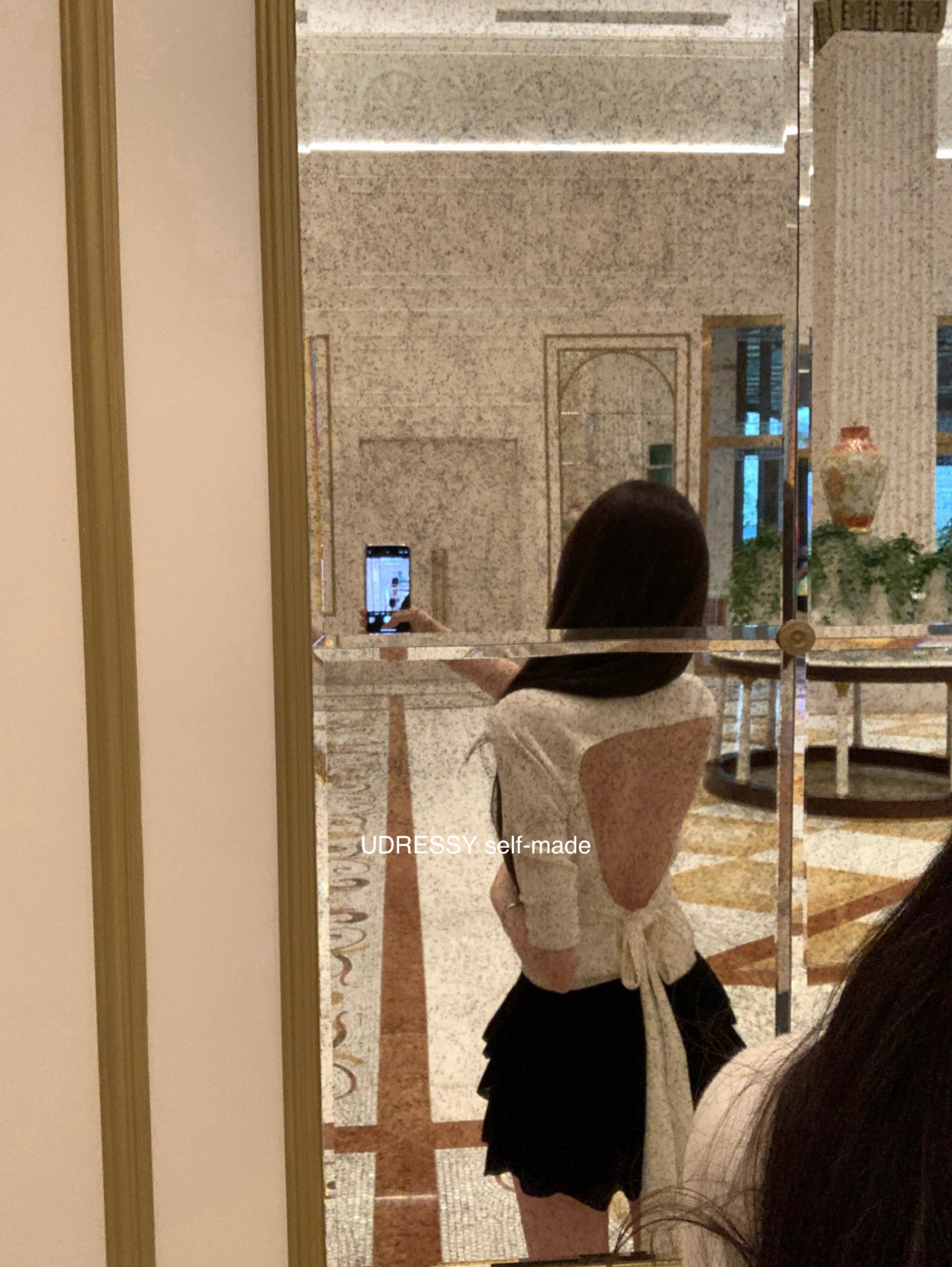 轉身挖空設計露出背部線條,加上垂墜感飄帶蝴蝶結,瞬間注入松弛感
