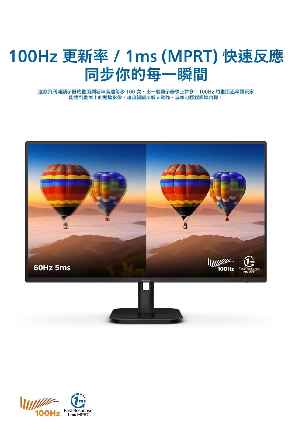 100Hz刷新率,影像超級順暢