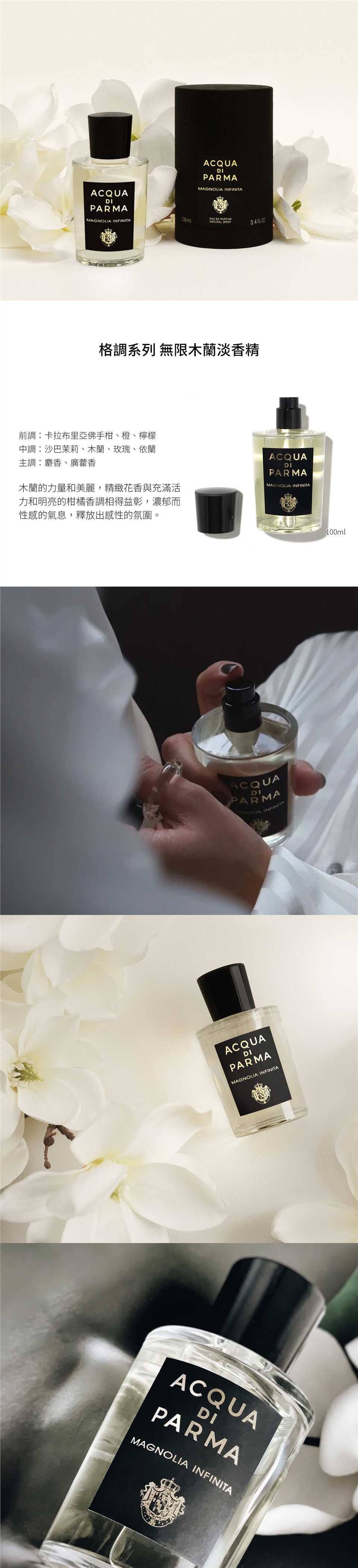 木蘭的力量和美麗,精緻花香與充滿活力和明亮的柑橘香調相得益彰,濃郁而性感的氣息,釋放出感性的氛圍