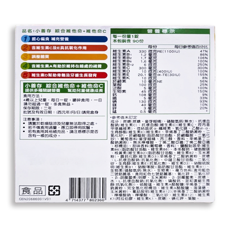 4歲以上兒童 每日一錠 嚼碎食用 一日請勿超過一錠多食無益