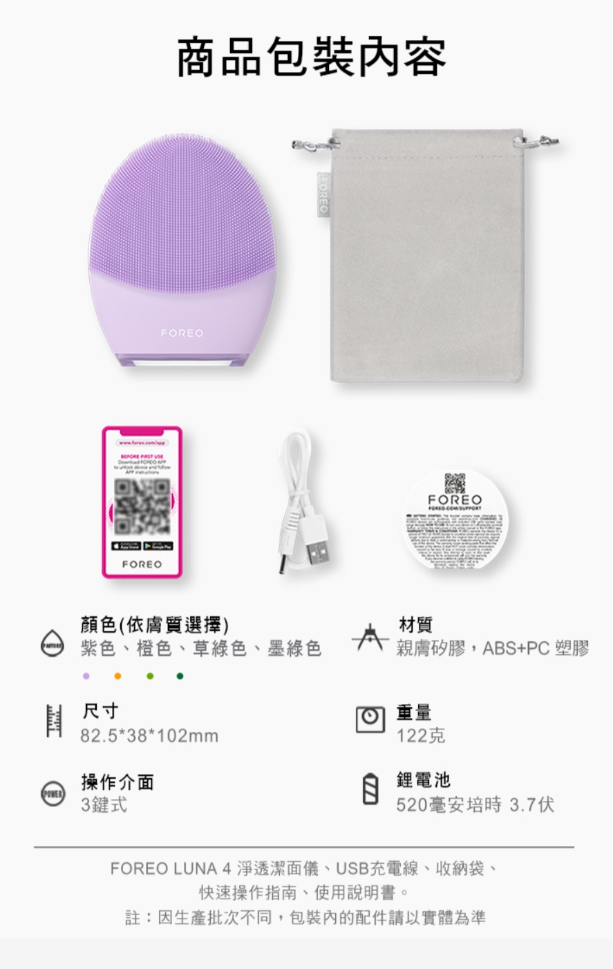 薰衣紫(敏感肌)、杏桃粉(中性肌)、蘋果綠(混合肌)、湖水綠(男士版)