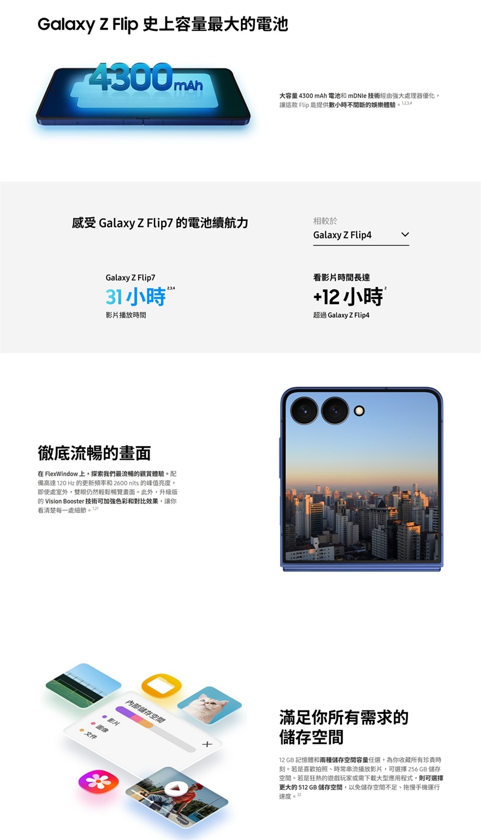 ◎ 4.1 吋 1,048 x 948pixels 解析度 Super AMOLED 封面螢幕(120Hz 螢幕更新率)