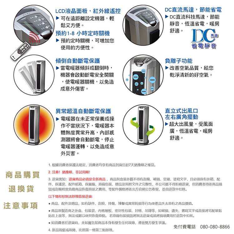 7.若您發現購買商品有瑕疵故障,請在收到商品的7天內,以下述方式辦理退貨/換貨: 《請完整的將商品、配件、包裝紙盒(含內外盒)、贈品、說明書,一併放入原箱中 (7日內請勿註冊相關序號商品),聯絡客服單位,我們即會派貨運來收回商品。